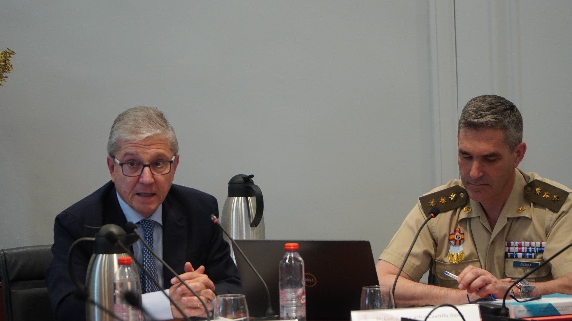 El coronel Juan Carlos Castilla Barea, analista del IEEE, compartió sus reflexiones sobre "El uso innovador del Tratado de Lisboa en las iniciativas de defensa" durante una jornada organizada por la Sección de Derecho Militar y Seguridad del ICAM, el pasado 27 de mayo, con presencia de colegiados ICAM en la sede y online.