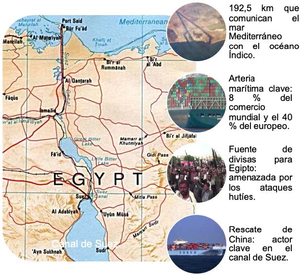 Por otro lado, aunque los flujos de navegación por el canal de Suez aún no se hallan restablecido por los ataques hutíes, no se prevé un cambio drástico por parte de China que continuará su avance en el mercado egipcio, especialmente en el ámbito portuario del canal de Suez, para convertir al país en un importante eje de su propia actividad económica.