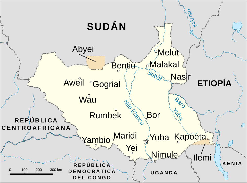Figura 1: Mapa de Sudán del Sur. Autor: Rowanwindwhistler.