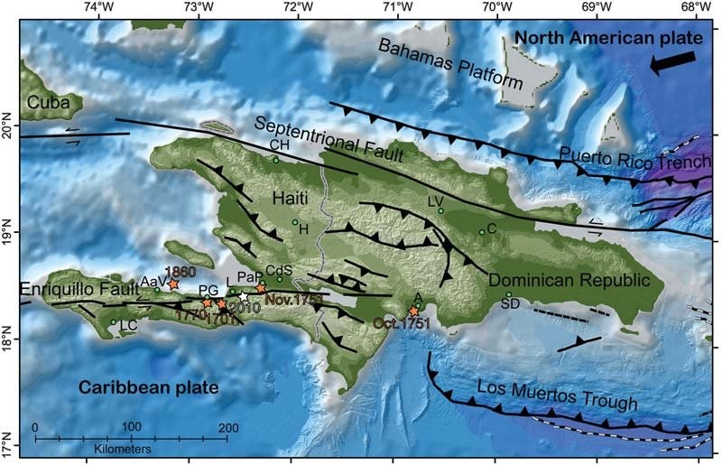Fuente: https://www.researchgate.net/figure/Map-of-Hispaniola-Haiti-and-the-Dominican-Republic-Fault-traces-are-shown-as-black_fig1_258611153.