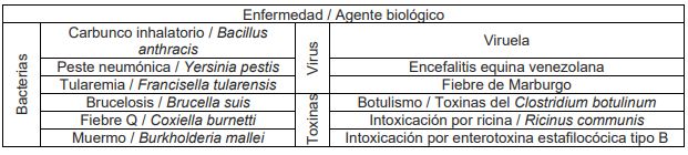 Tabla 1. Listado de agentes incluidos en la docena sucia