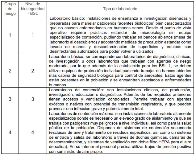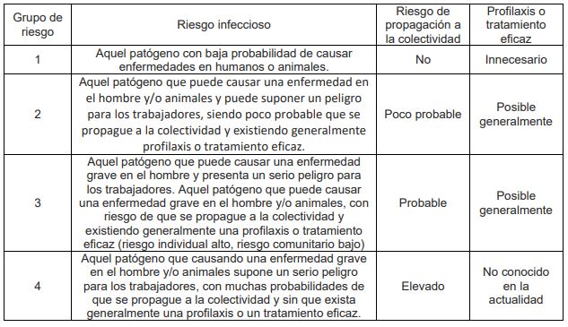 Tabla 2. Grupo de riesgo de los agentes biológicos32