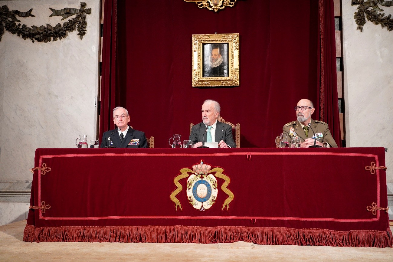 Durante la presentación, moderada por el director de la RAE, Santiago Muñoz Machado, intervinieron, además del JEMAD, almirante general Teodoro López Calderón, el teniente general Miguel Ballenilla, el general de brigada Víctor Bados Nieto y varios de los autores de la obra.