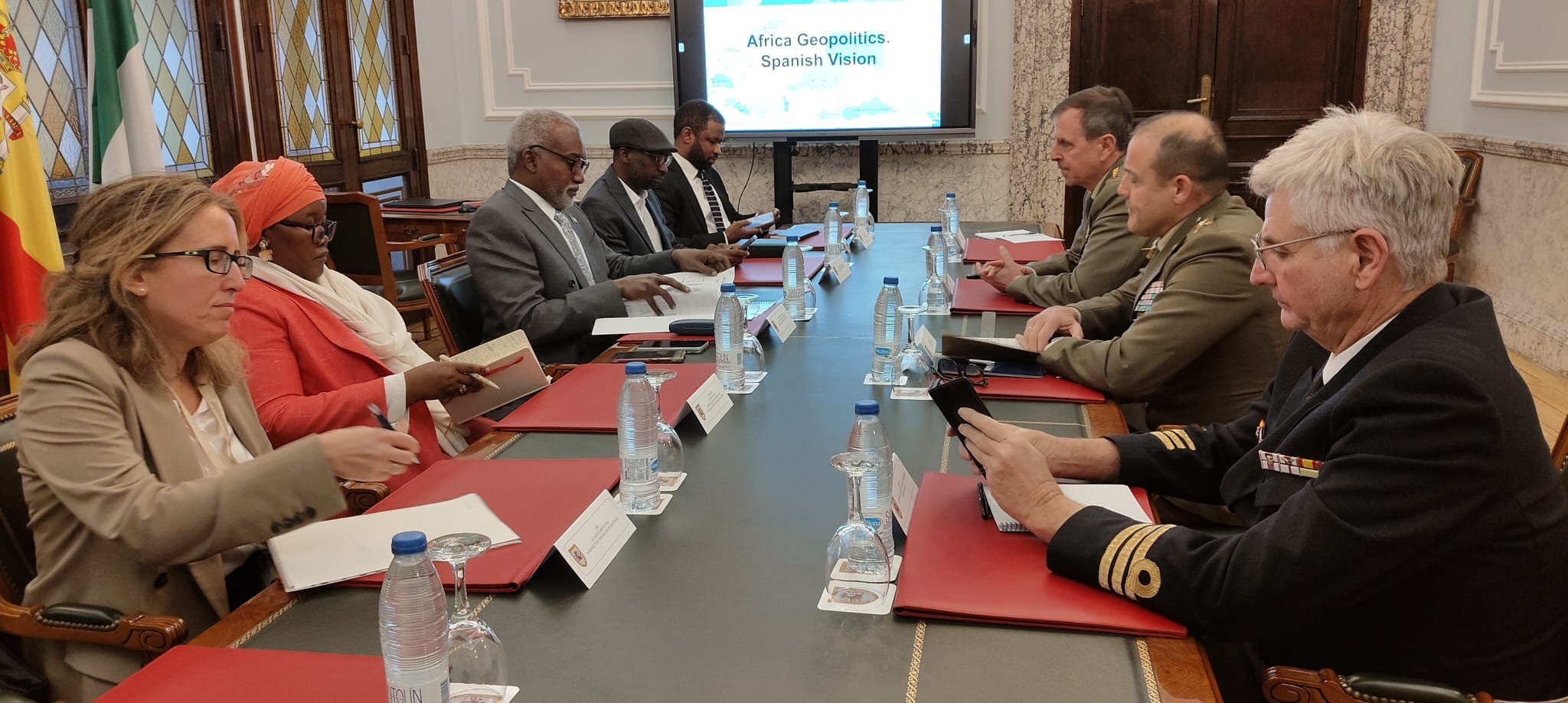 Con motivo de la visita a España del ministro de Asuntos Exteriores de Nigeria, una delegación de la Embajada de Nigeria en Madrid mantuvo un encuentro de trabajo en el CESEDEN con el Instituto Español de Estudios Estratégicos (IEEE). La reunión fue organizada por la Dirección General para África (DGA) del Ministerio de Asuntos Exteriores, Unión Europea y Cooperación (MAEC).