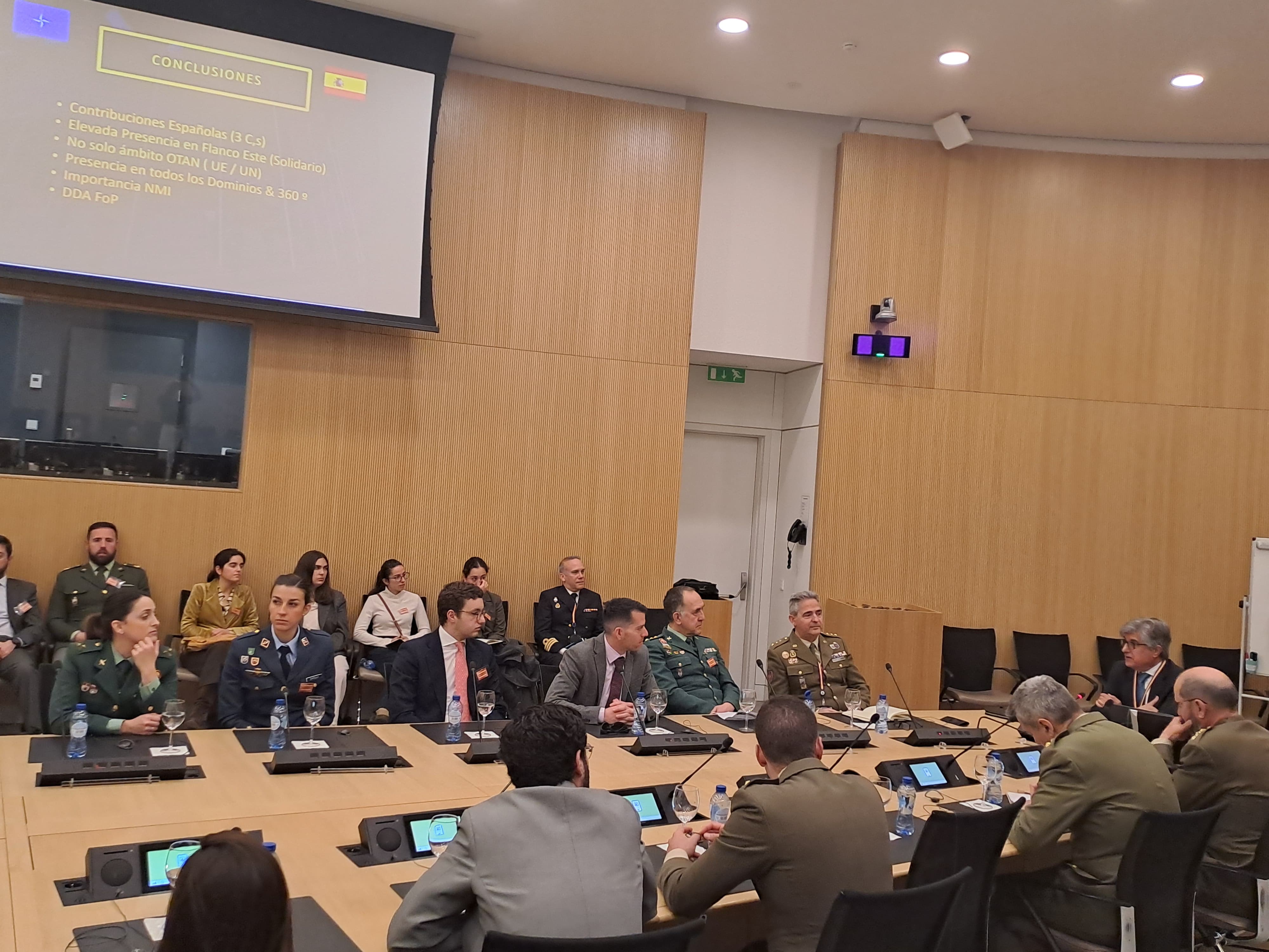 Para finalizar los alumnos se desplazaron al NATO-HQ, donde recibieron varias conferencias: por parte de Dª. Tamara Zabala Utrillas, Consejera política, “Aportaciones de España a la Alianza para la Cumbre de la Haya”, del Tcol D. Fernando Oteyza Ordoñez, Analista MILREP OTAN, “PDC. Estructura de Mando y Fuerzas de España en la OTAN, del Tcol. D. Fernando Fuentesal García, Consejero Adjunto de Defensa, “Operaciones OTAN y planes” y de Dª Paula Redondo, Consejera, Oficina de Coordinación de Políticas de Rusia, División de Asuntos Políticos y Política de Seguridad (PASP), “Las relaciones de la OTAN con Rusia”.