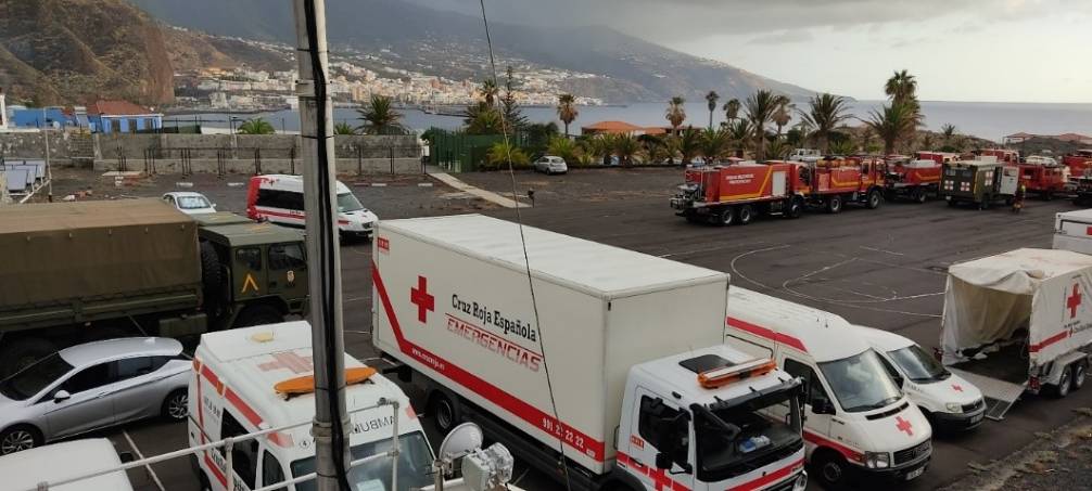 Con motivo de las recientes erupciones volcánicas en la isla de La Palma, personal militar de diversas Unidades se ha desplazado al Acuartelamiento “El Fuerte” para colaborar con las labores de evacuación y atención a la población civil.