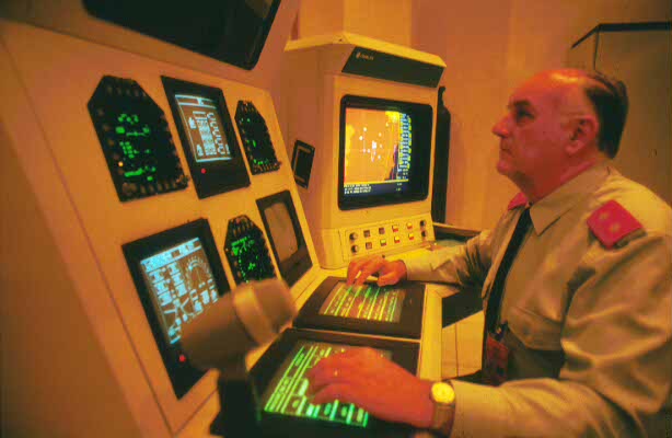 Consola de control del simulador de vuelo de un F-18, en el que se entrenan los pilotos del Ala 12 (Torrejón de Ardoz) (Pepe Díaz(RED)