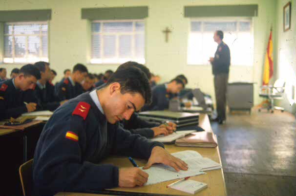 Futuros oficiales del Ejército del Aire, en un aula de la Academia General del Aire de San Javier (Murcia). (Jorge Mata/RED.)