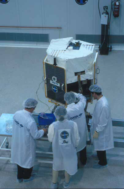 Un grupo de ingenieros españoles trabajan en el proyecto del Minisat en las instalaciones que el Instituto Nacional de Técnica Aeroespacial Esteban Terradas (INTA) tiene en localidad madrileña de Torrejón de Ardoz. (Edu Fernández/RED)