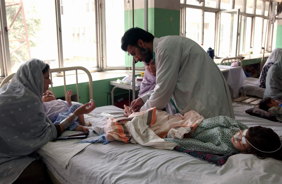 Escasez de espacio y medios. Un médico atiende a un paciente en el hospital de Indira Ghandi de Kabul.