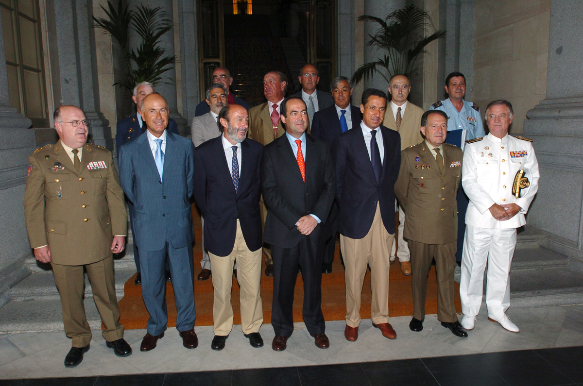 El ministro Bono junto a representantes de los grupos parlamentarios y la cúpula militar en el Cuartel General del Ejército de Tierra