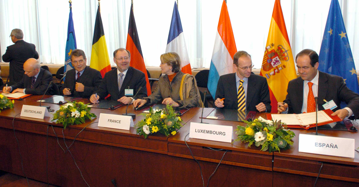 José Bono firma el tratado de Estrasburgo junto con los ministros de Defensa de Alemania, Bélgica, Francia y Luxemburgo