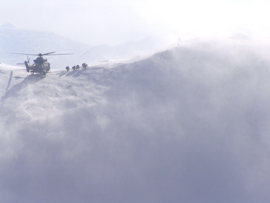 Helicoptero español depositando la primera patrulla que ha podido reconocer in situ los restos del avión afgano siniestrado