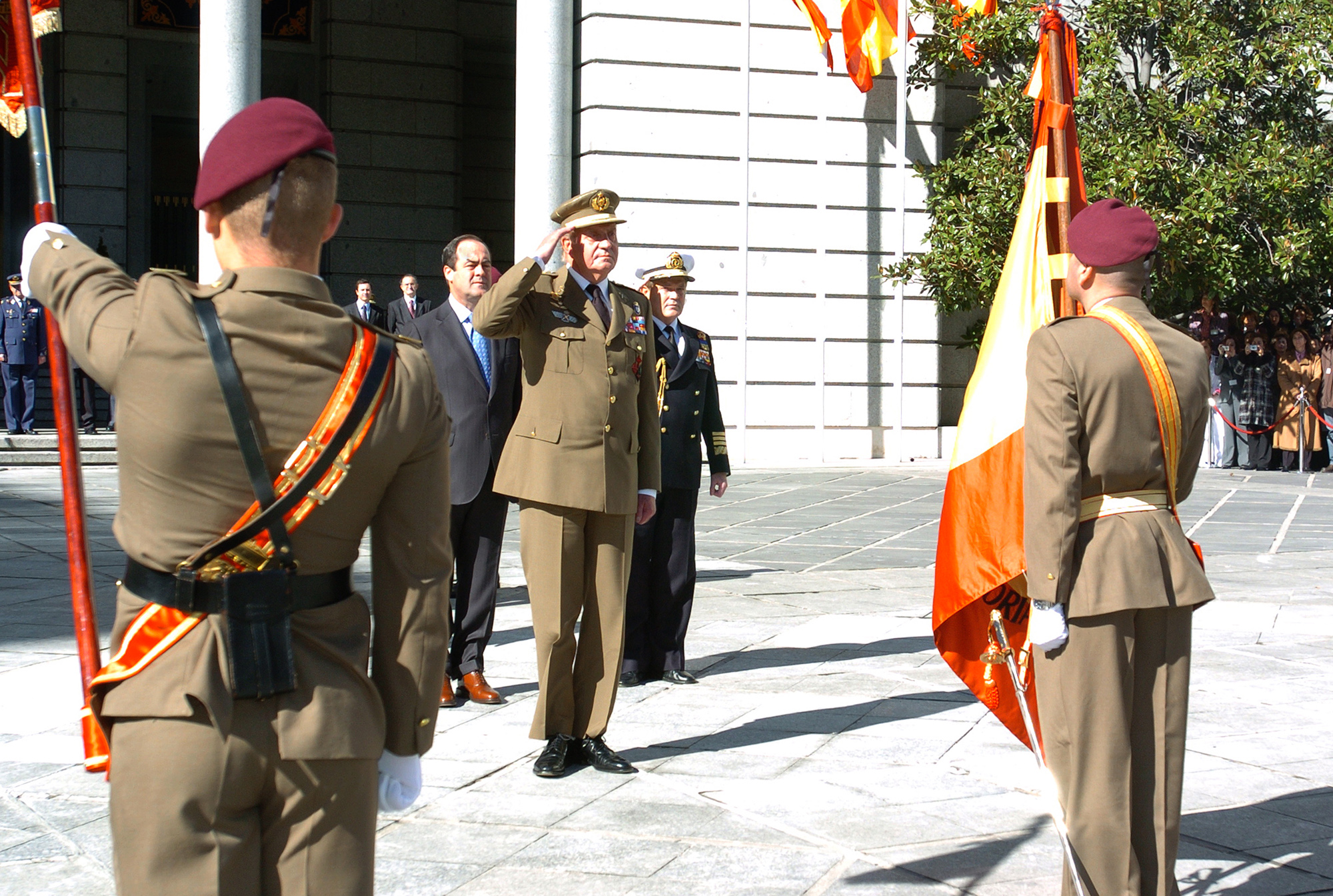 SM el Rey y el ministro de defensa saludan a la Bandera