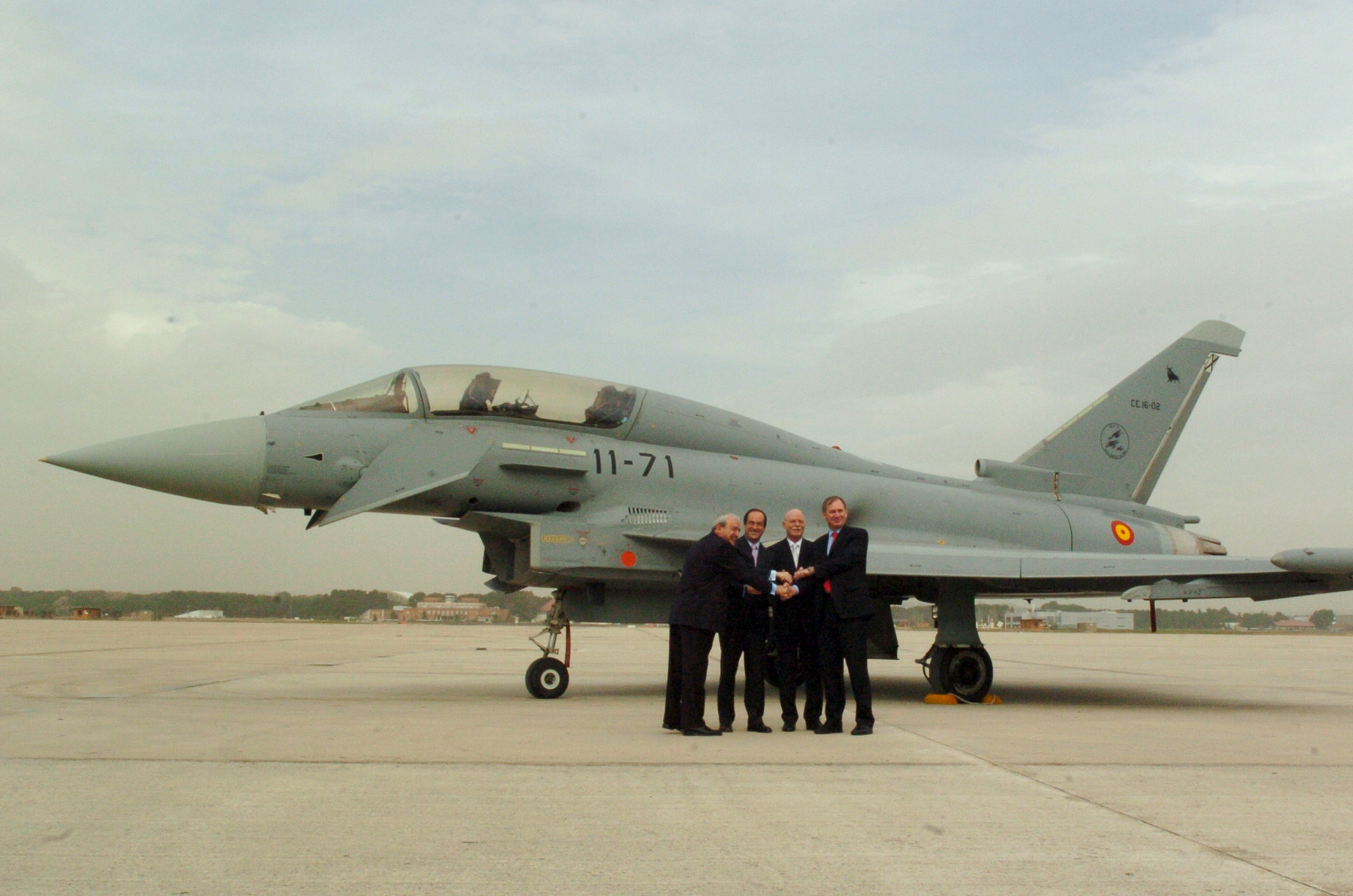Los titulares de Defensa de Italia, España, Alemania y Reino Unido ( de derecha a izquierda) en la Base Aérea de Torrejón