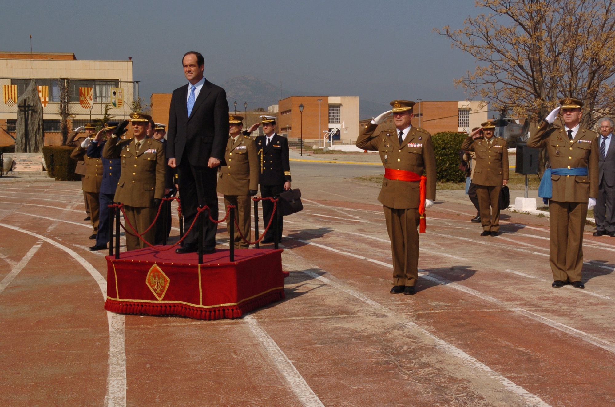 El ministro de Defensa, José Bono, recibe honores en la base 'General Alvarez de Castro' de Sant Climent de Sasebas (Girona)