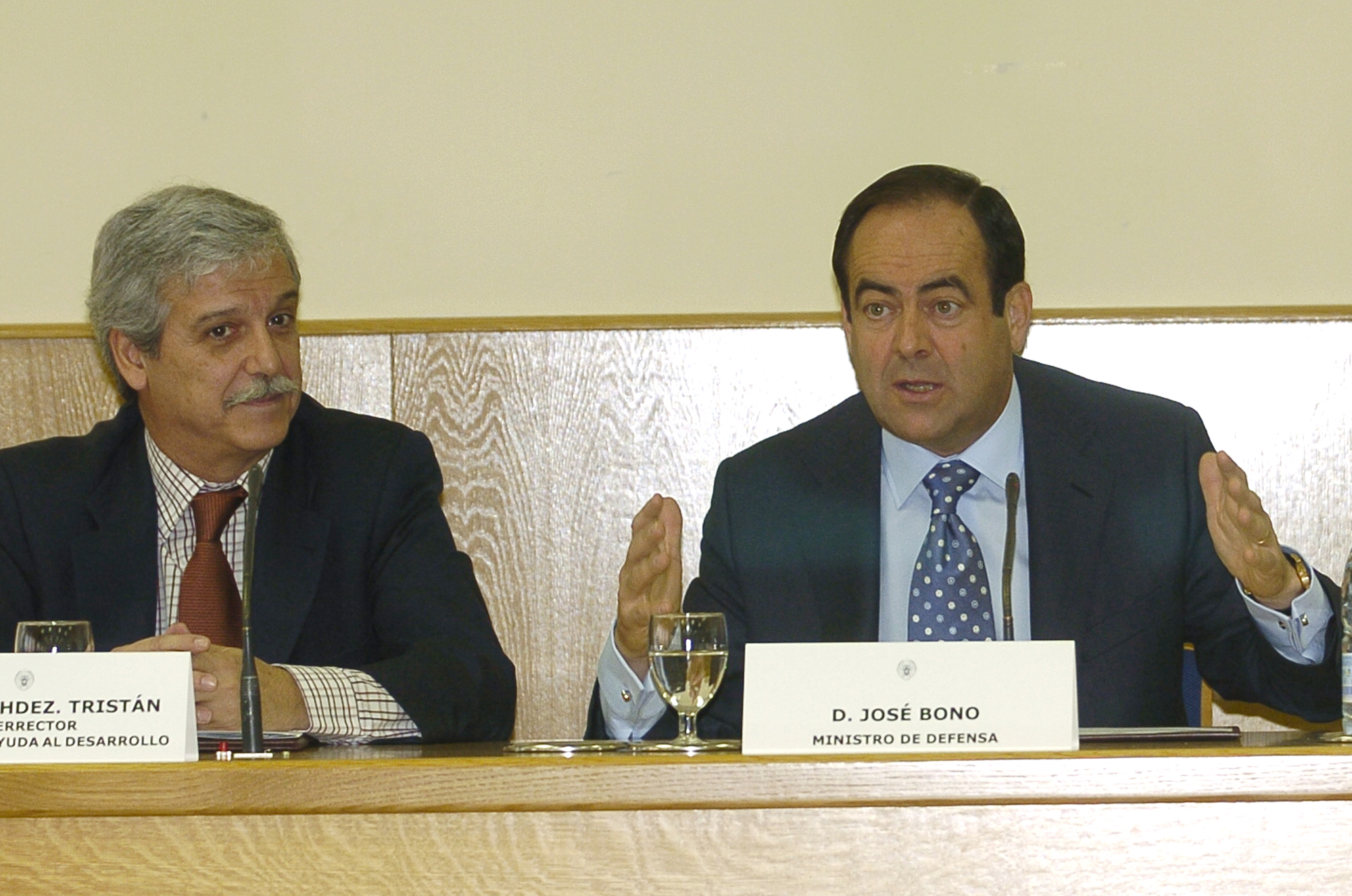 El Ministro de Defensa, José Bono, durante su conferencia en el acto inaugural de las jornadas "Movimientos sociales por la memoria histórica" en la Facultad de Geografía e Historia de la Universidad Complutense de Madrid