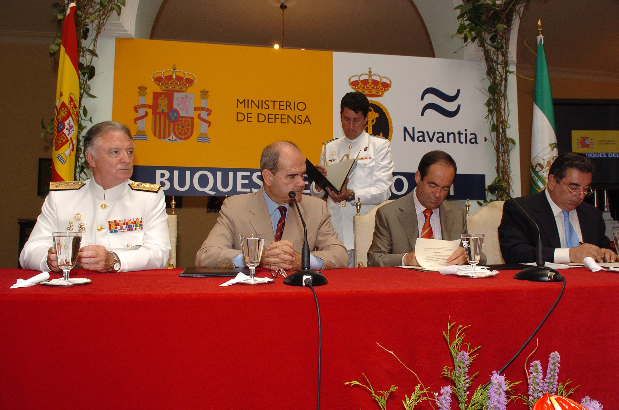 El presidente de la Junta de Andalucía, el ministro de Defensa y el presidente de Navantia firman en el Palacio de Capitanía el protocolo de intenciones