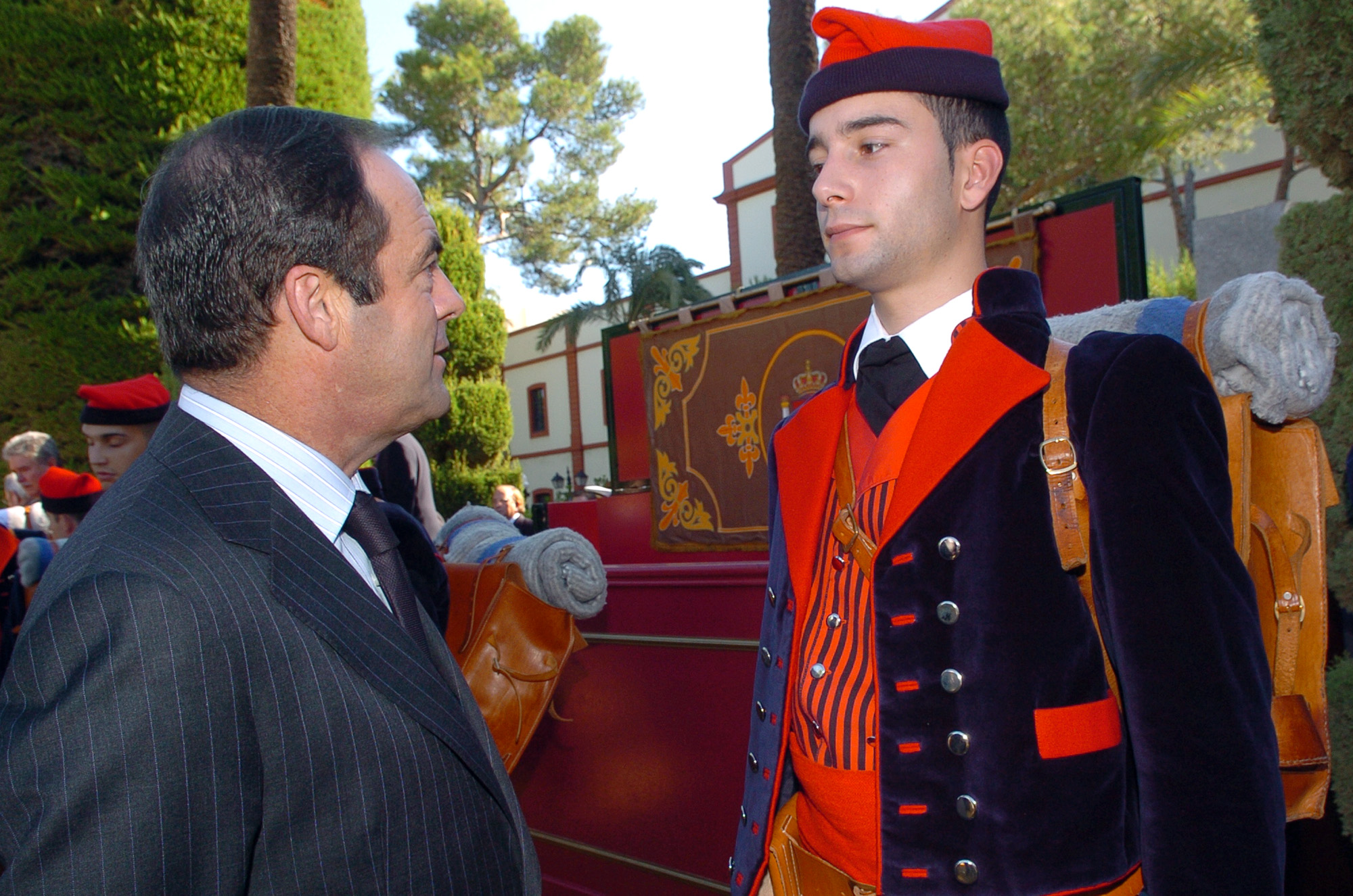 José Bono, ministro de Defensa con un soldado de época en el Parque Genovés en Cádiz