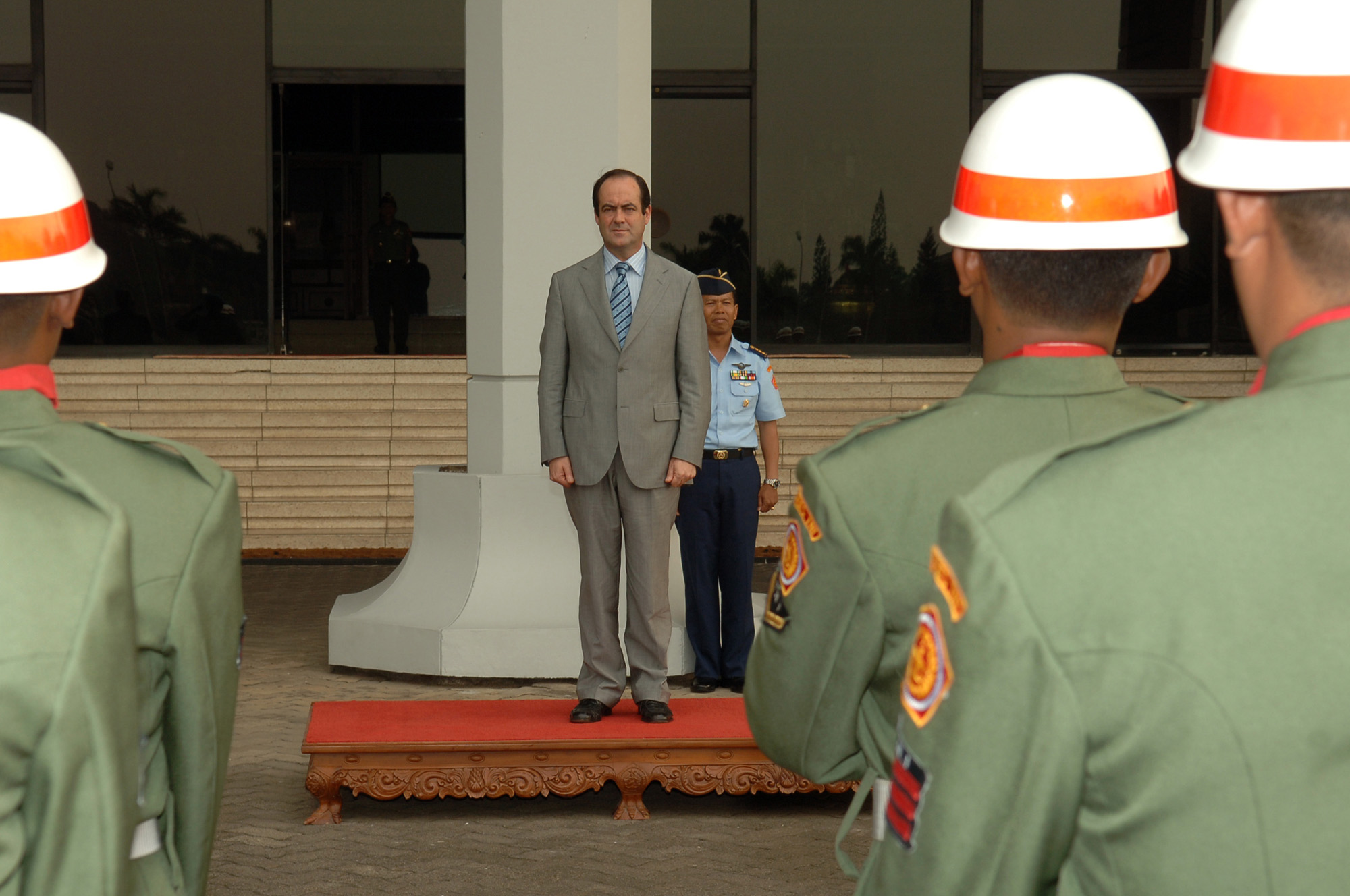 El ministro de Defensa, Jose Bono, recibe honores a su llegada al Cuartel General del Ejercito de Indonesia