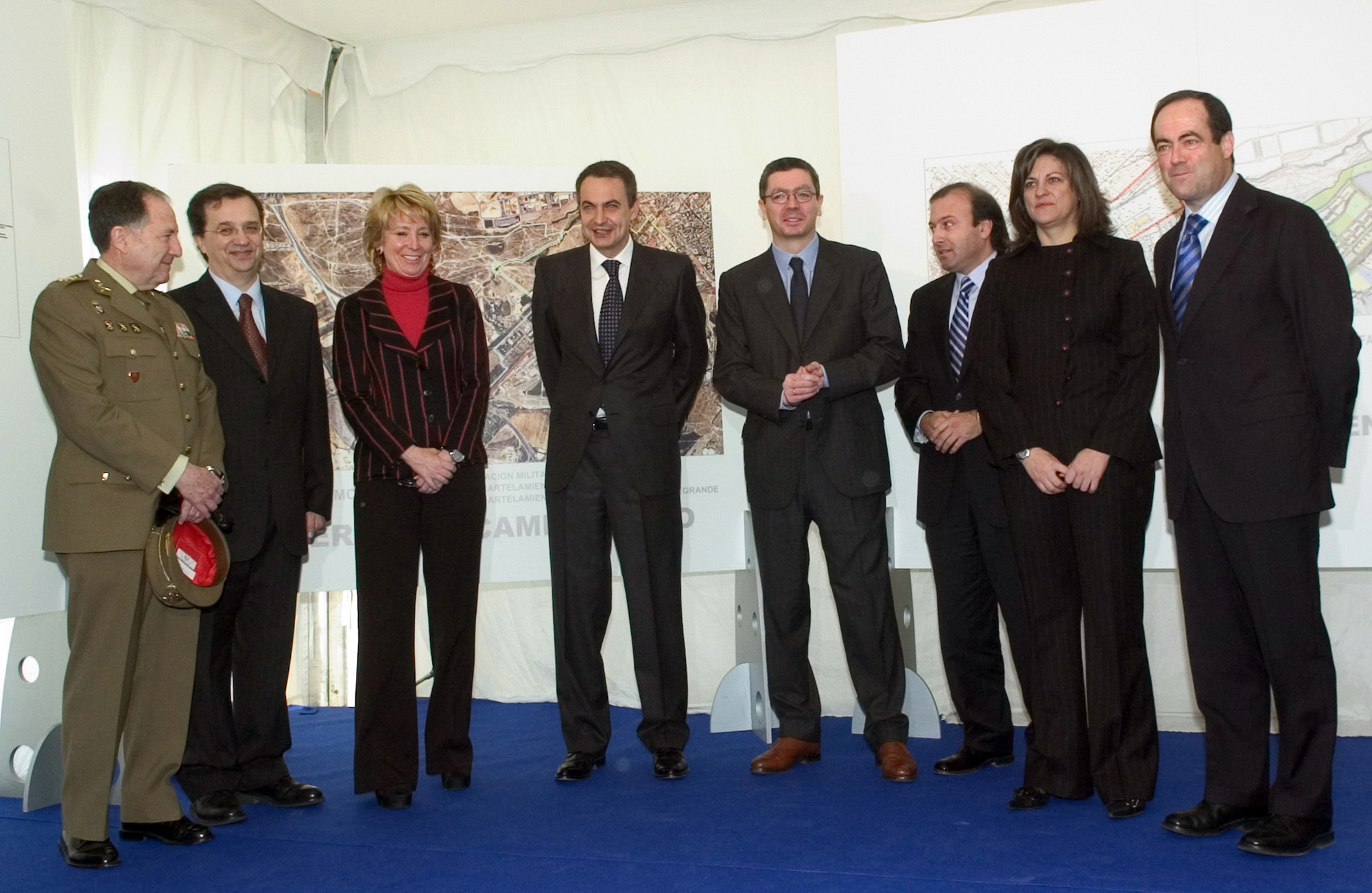 El presidente del Gobierno con las autoridades que le han acompañado durante el acto de inicio del derribo de los cuarteles de Campamento