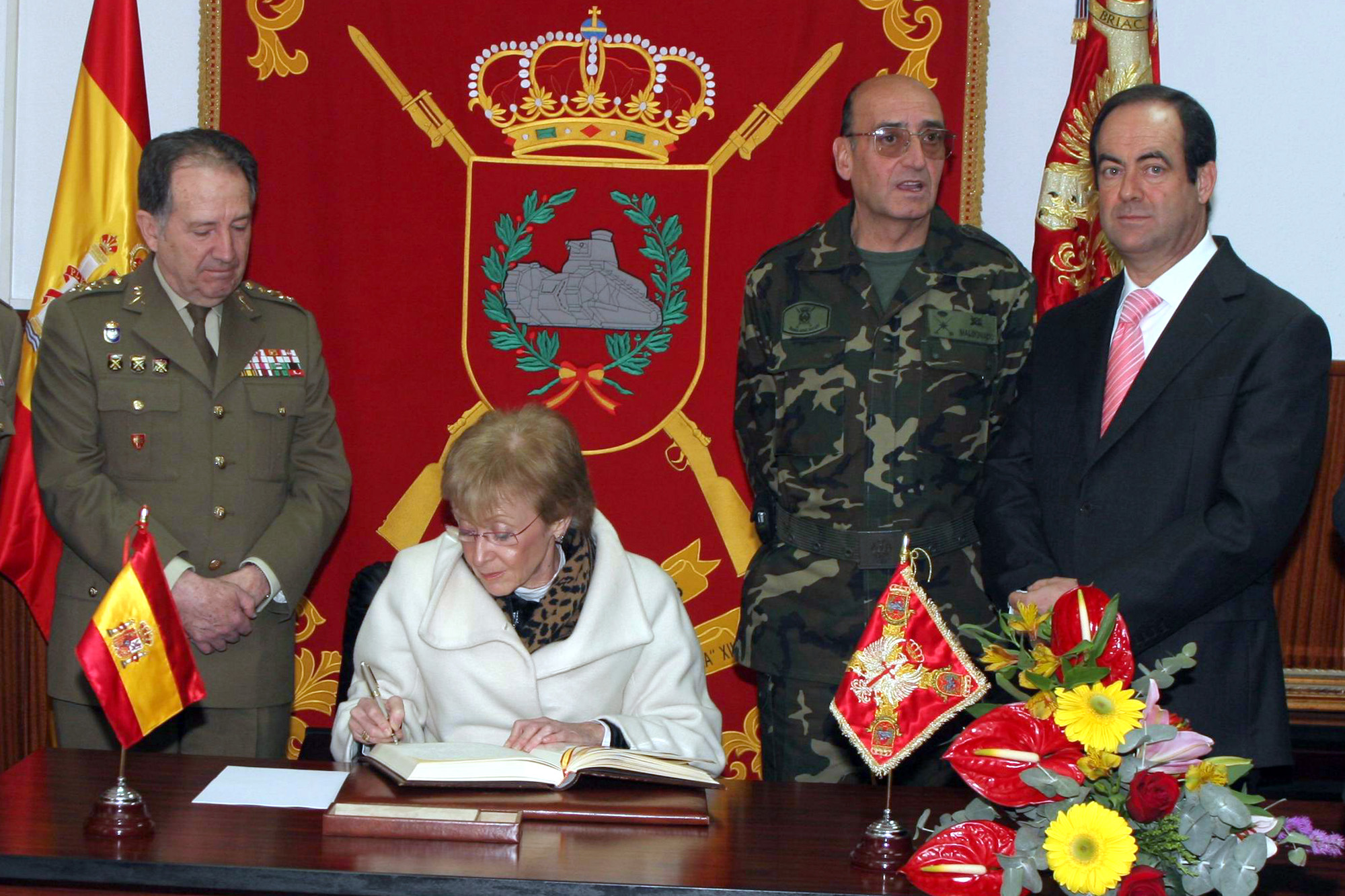 La vicepresidenta primera del Gobierno, firma en el libro de honor de la Base Militar.