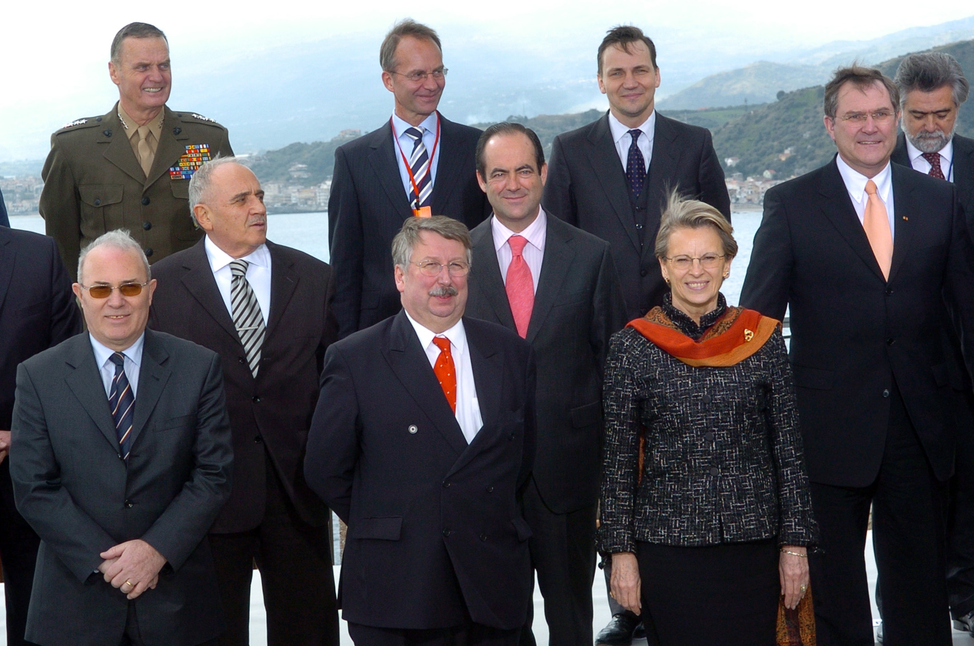 Plano parcial de la foto de familia de los ministros de Defensa de los paises de la OTAN, en el cento, el ministro de Defensa de España, José Bono