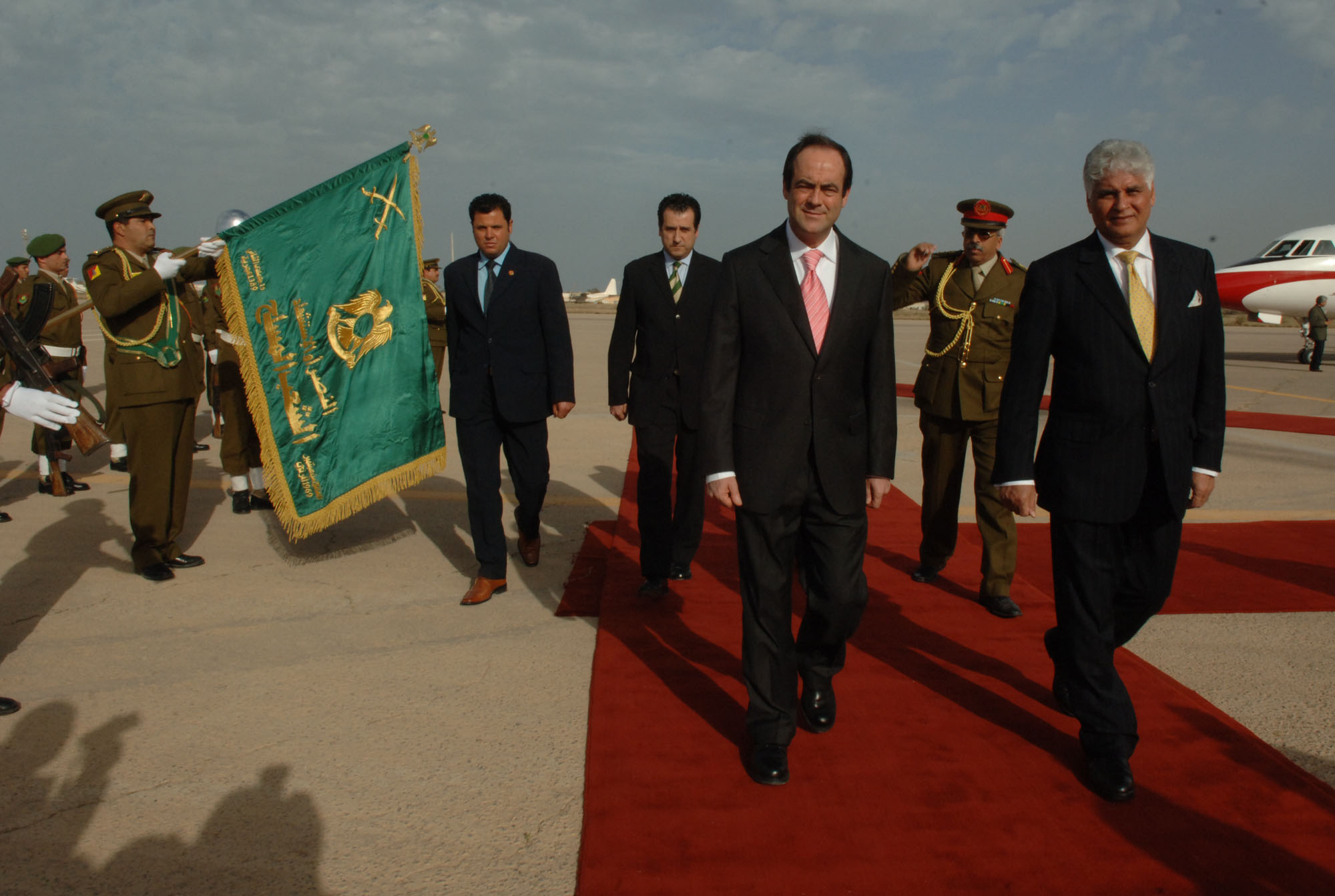 José Bono, mionistro de Defensa, con el Gral Ahmed Mahmoud All Zway, Responsable de relaciones exteriores de Libia, a su llegada al aeropuerto de Metiqa, Tripoli