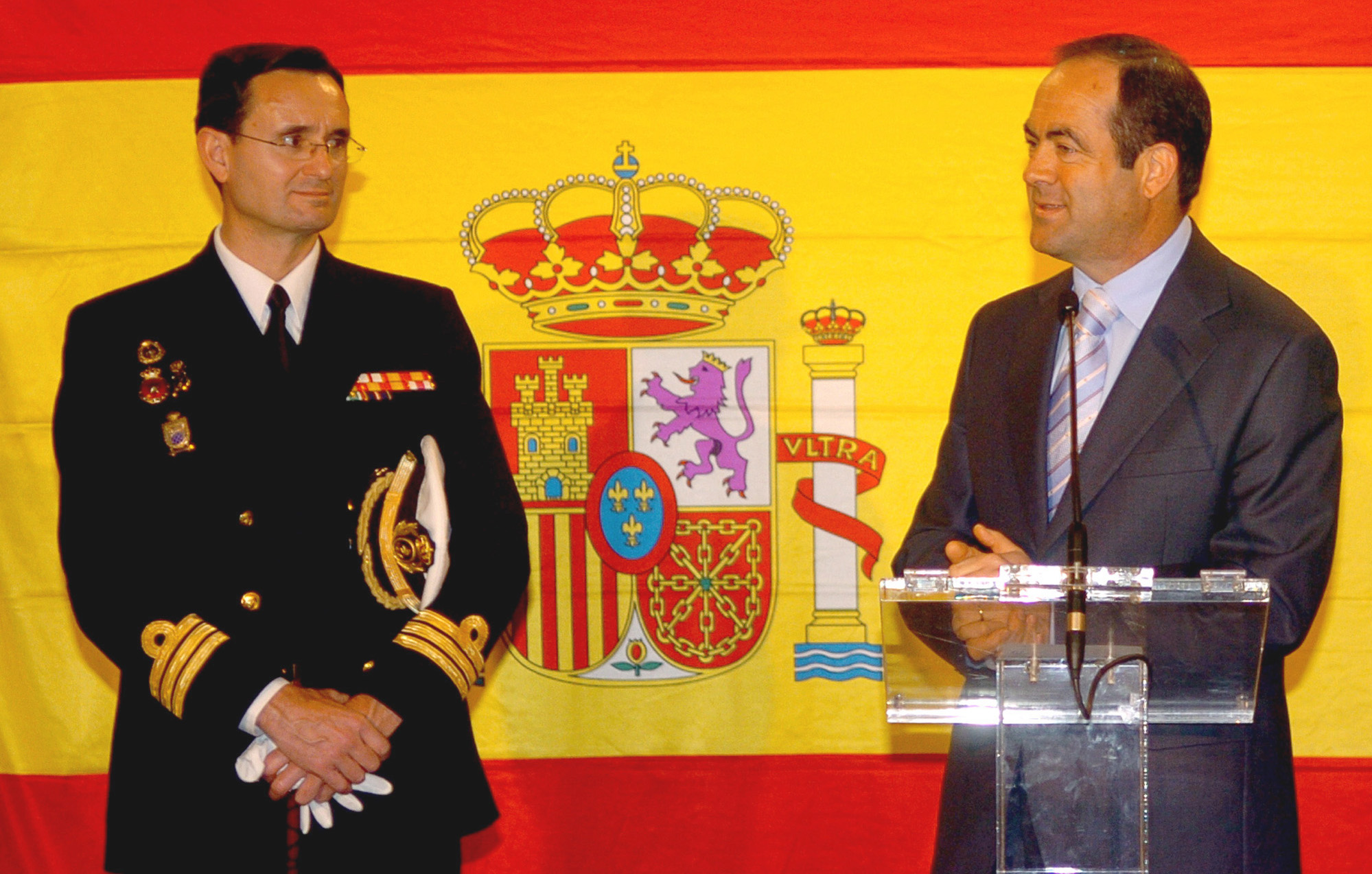 El ministro de Defensa,José Bono, entrega el mando de la fragata F-104 Méndez Núñez, al capitán de fragata Aniceto Rosique Nieto