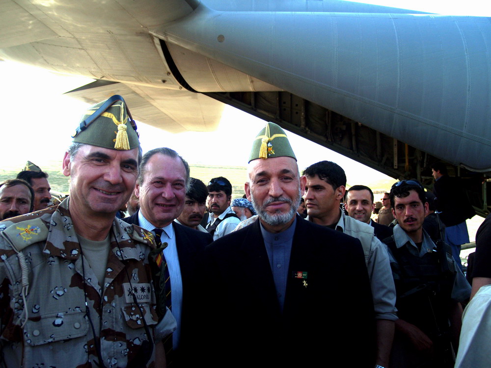Presidente Hamid Karzai: Junto al coronel Alonso y el embajador español en Afganistán,José Turpín Molina.