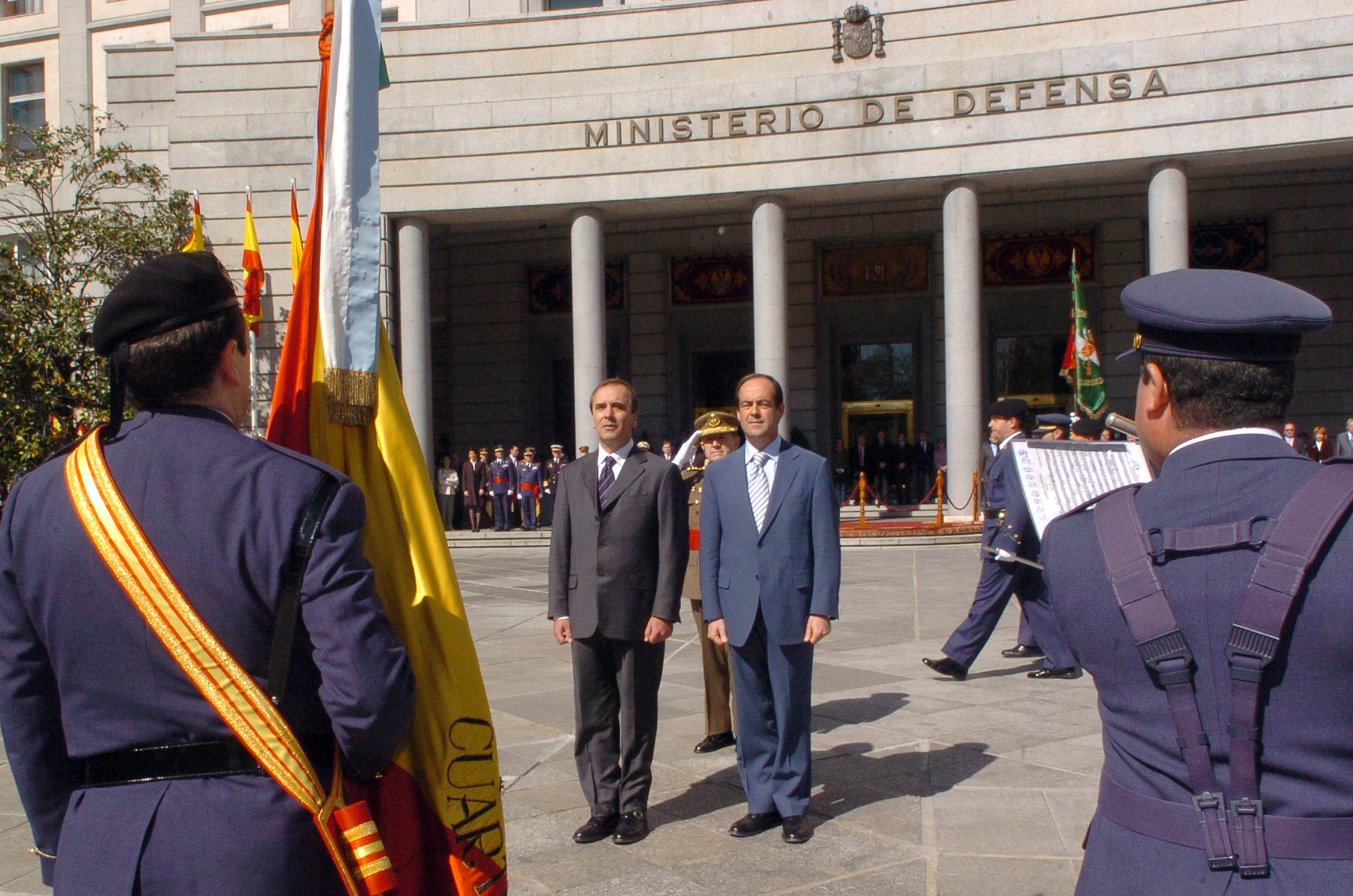 Los ministros, José Antonio Alonso y José Bono, en el Ministerio de Defensa