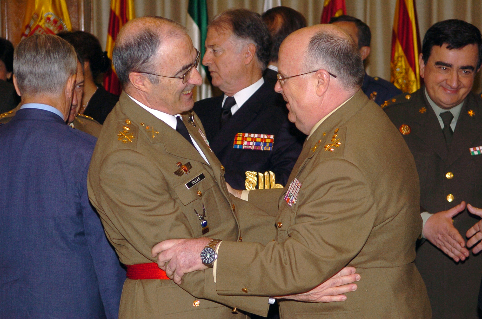 El general de Ejército Villar Turrau jefe del Estado Mayor del Ejército de Tierra saluda a su antecesor el general de Ejército García Gonzalez