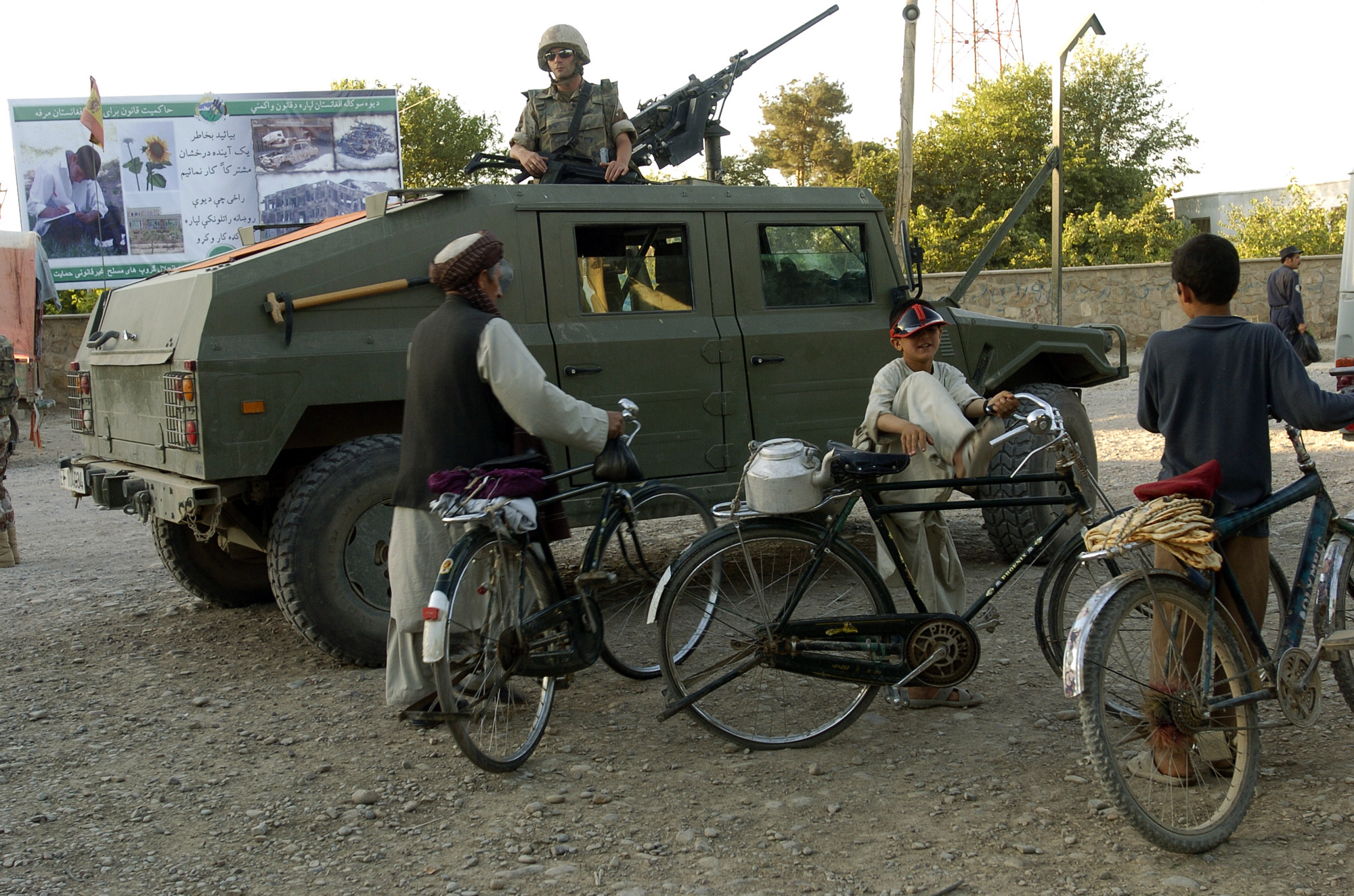 Patrulla española en un vehículo de alta movilidad táctica (VAMTAC) en una calle de Qala i Naw