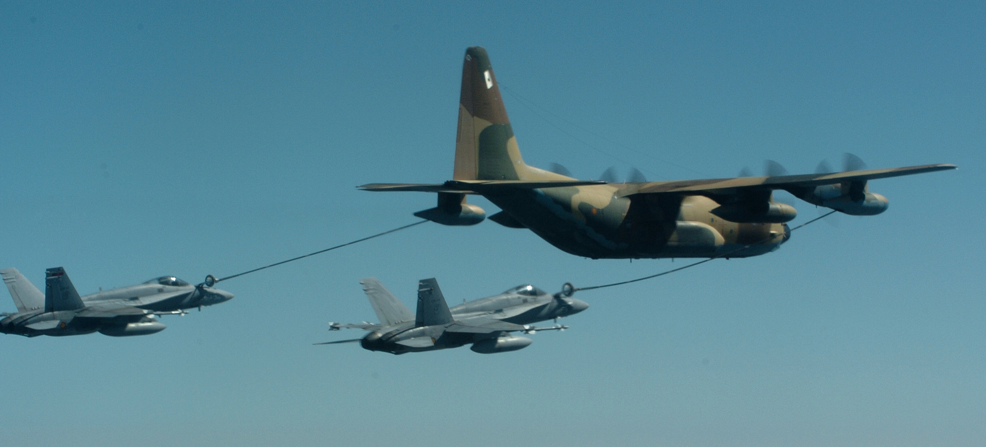 Durante el vuelo a Zaragoza, el ministro de Defensa, José Antonio Alonso, pudo observar la operación de reabastecimiento en vuelo,en la que participaron un TK-10(Hercules) y dos C-15 (F-18)