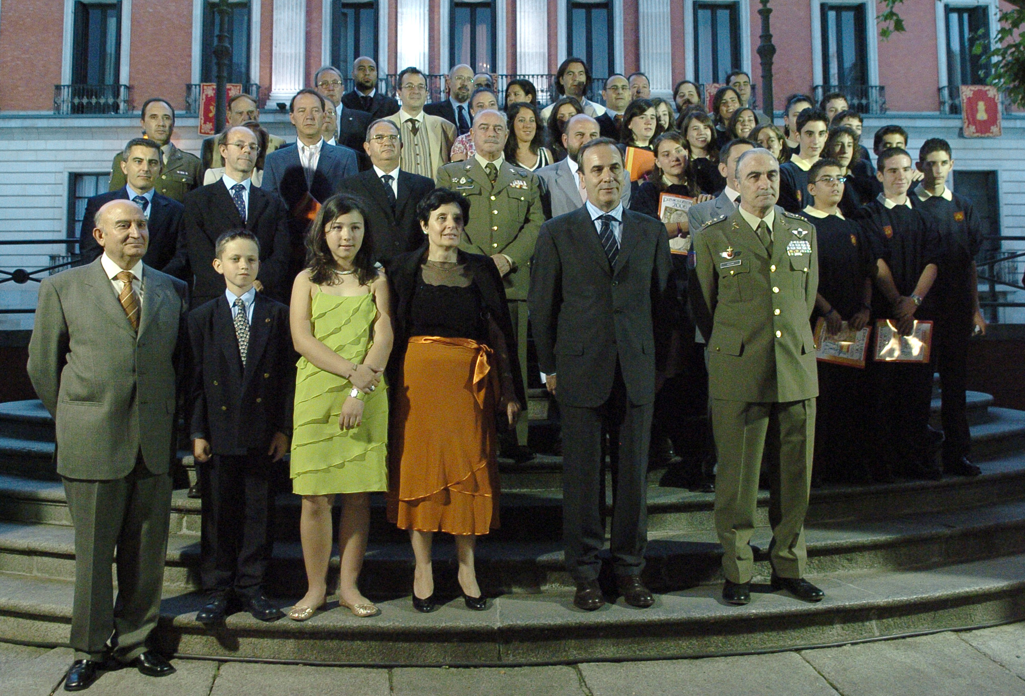 El ministro de Defensa, José Antonio Alonso y el Jefe del Estado Mayor del Ejército de Tierra, General Carlos Villar, con todos los premiados en esta edición de los Premios Ejército
