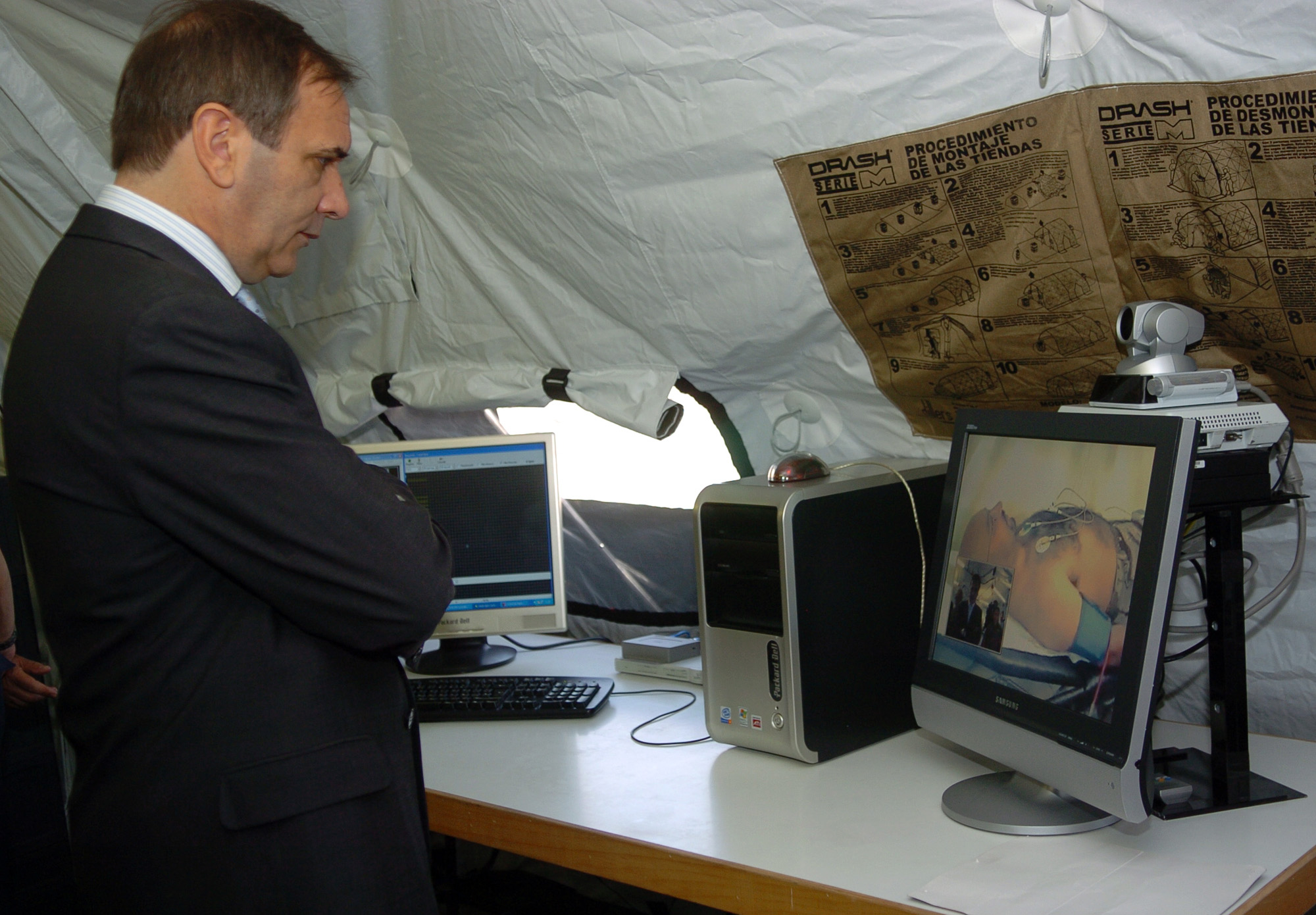 El ministro de Defensa, José Antonio Alonso, mantuvo una conversación con el teniente coronel médico, destacado en Afganistán, a traves de videoconferencia