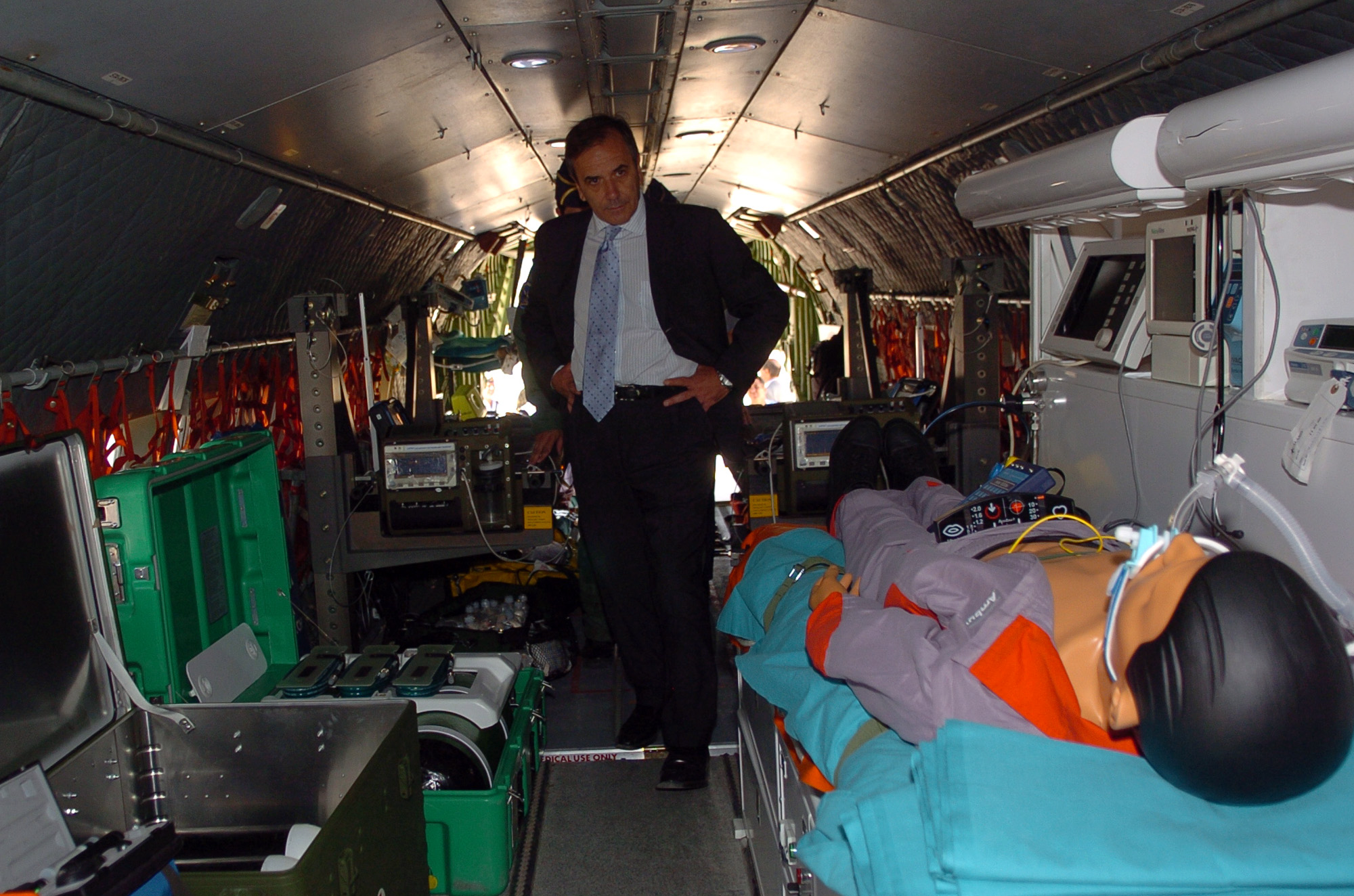 José Antonio Alonso, ministro de Defensa, sube a un avión medicalizado, para ver los detalles del equipamiento