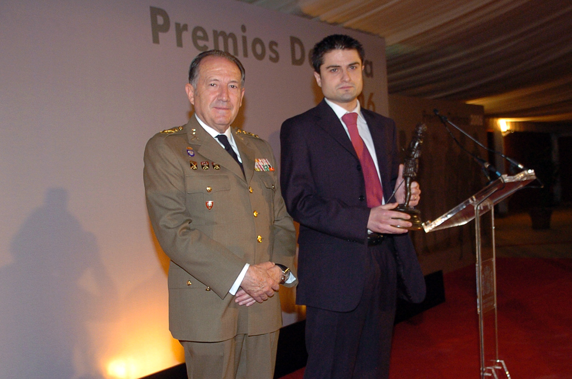 El Jefe de Estado Mayor de la Defensa (JEMAD), Félix Sanz Roldán, entrega el premio Defensa "Investigación Académica" a Juan Alfonso Merlos García.