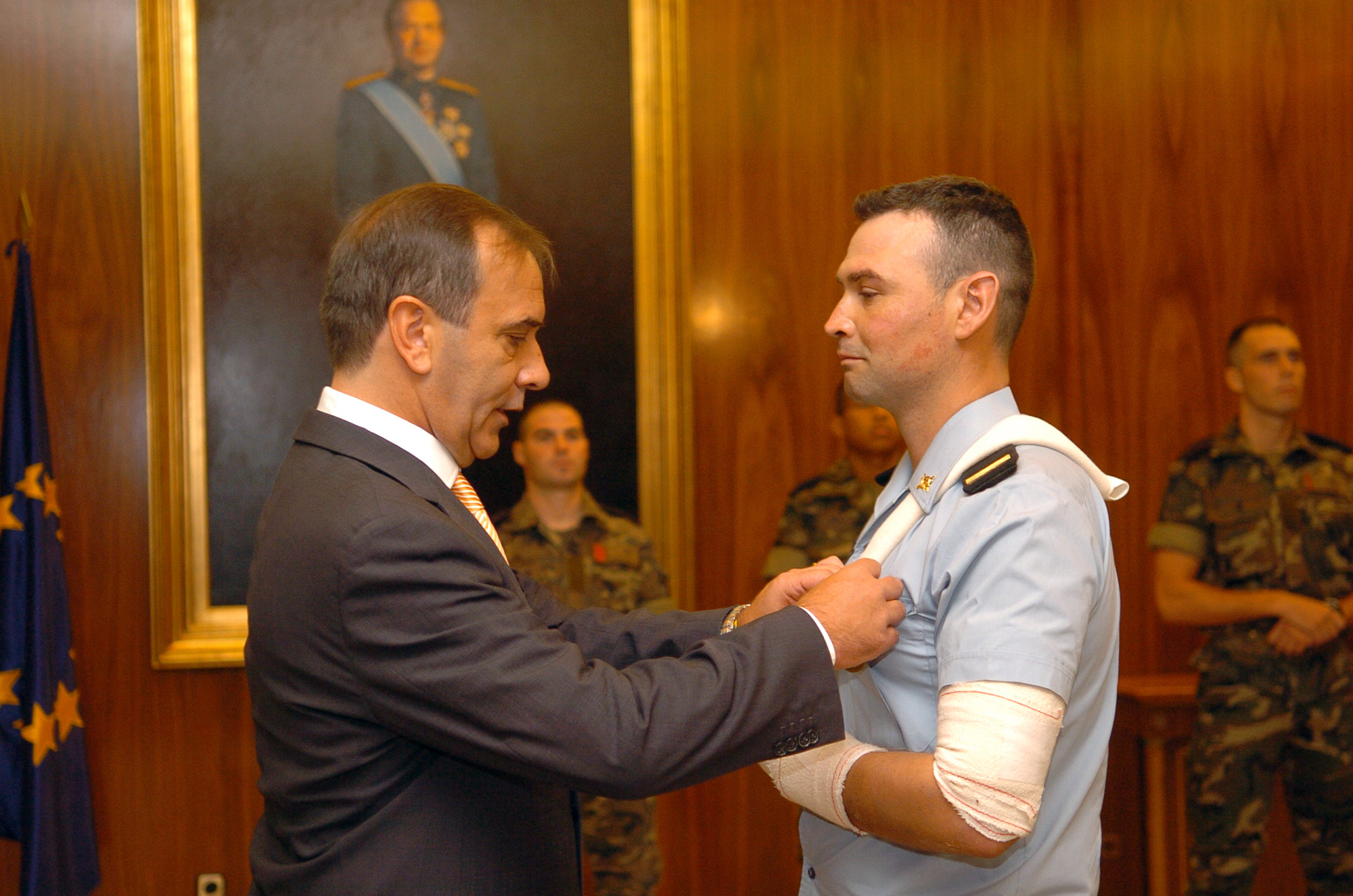 El ministro de Defensa, José Antonio Alonso, ha impuesto hoy la Medalla OTAN ISAF al cabo 1º José Antonio Murías Pillado, 'por los servicios realizados en operaciones de mantenimiento de la paz en Afganistán'