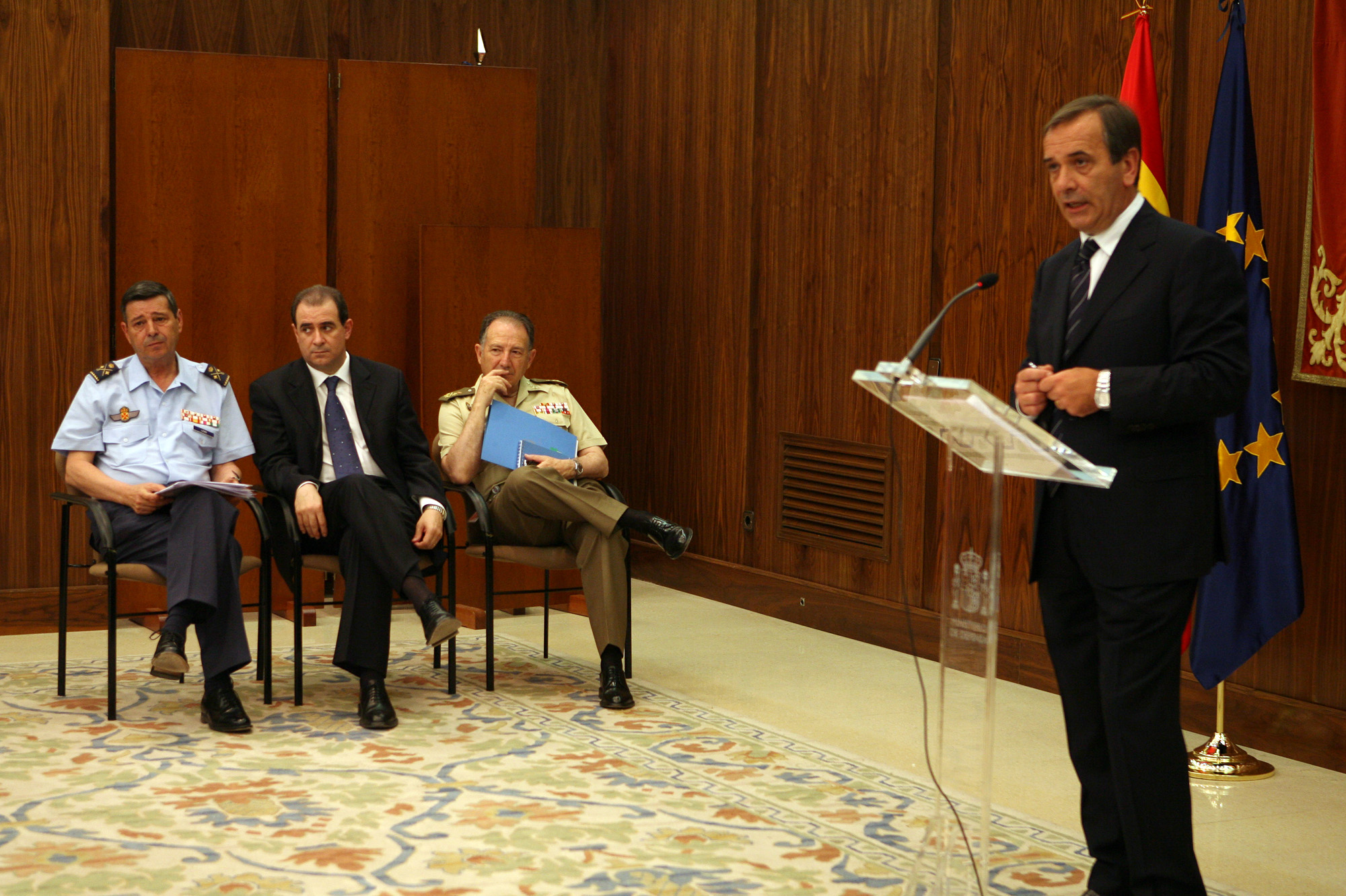 El ministro de Defensa, José Antonio Alonso, durante la  rueda de prensa en el Ministerio de Defensa