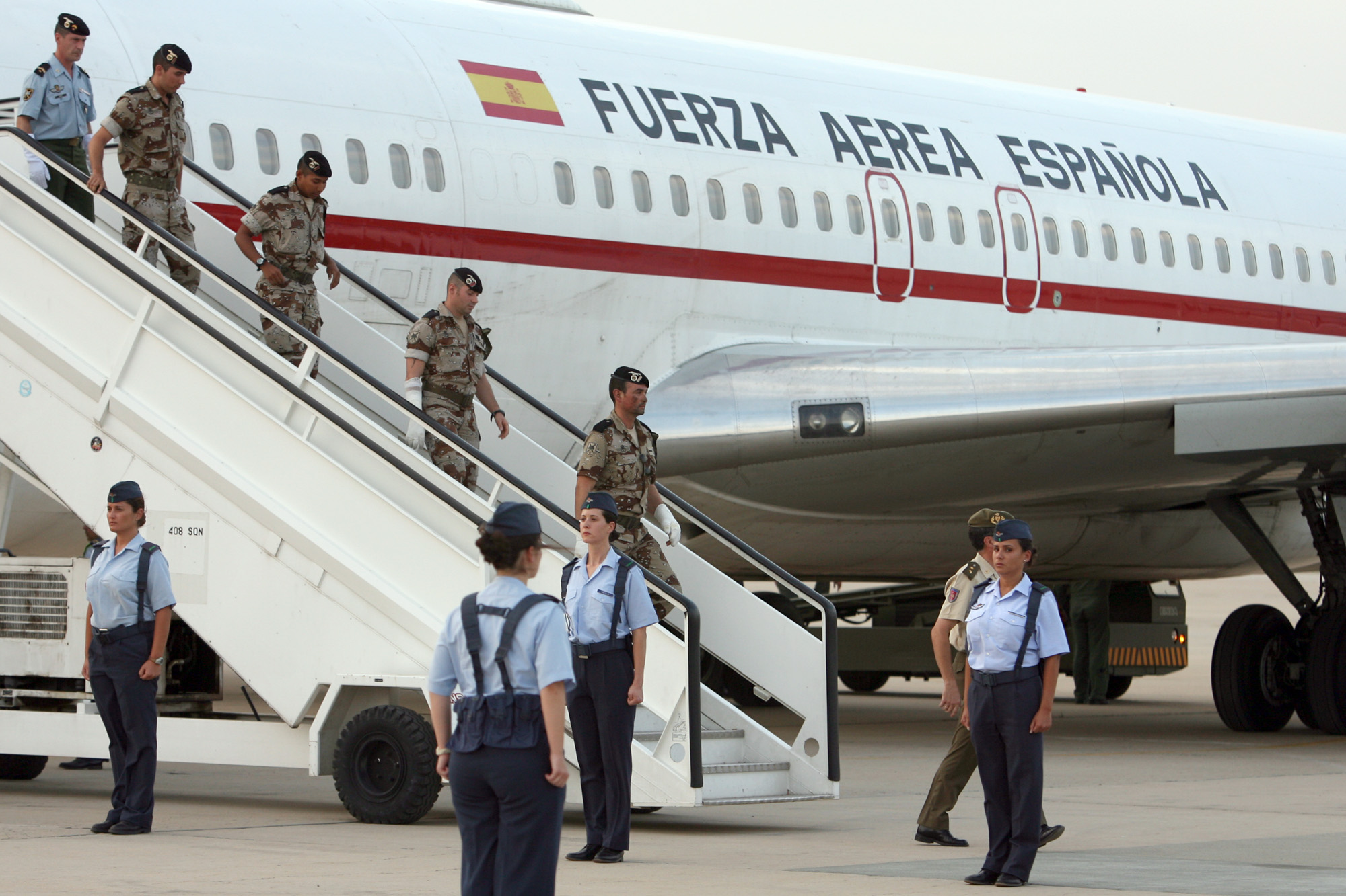 Heridos el pasado sábado en Afganistán descienden del avión del Ejército del Aire que les trasladó a la Base Aérea de Torrejón