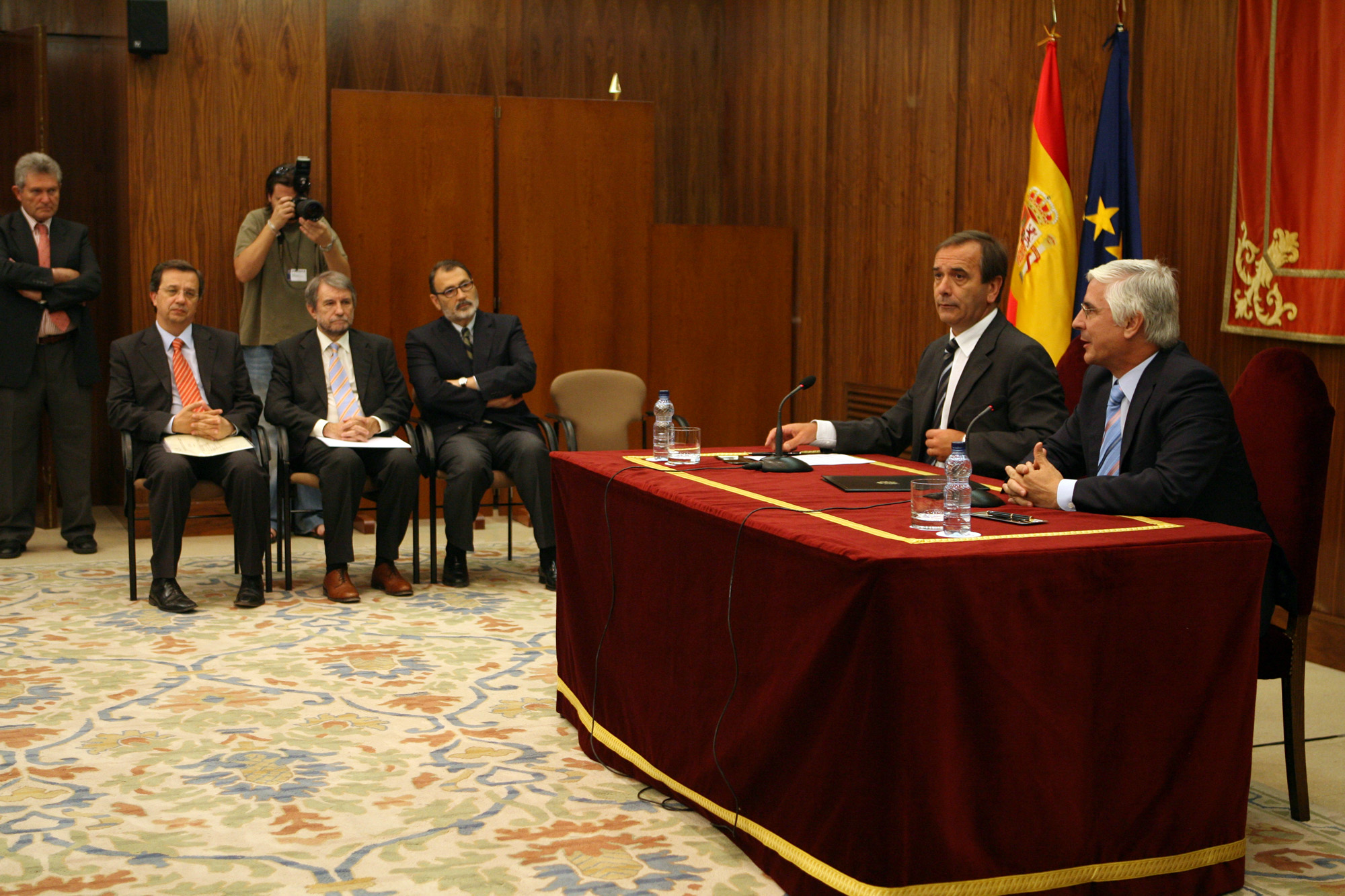 El presidente de Castilla la Mancha y el ministro de Defensa durante la rueda de prensa tras la firma del convenio