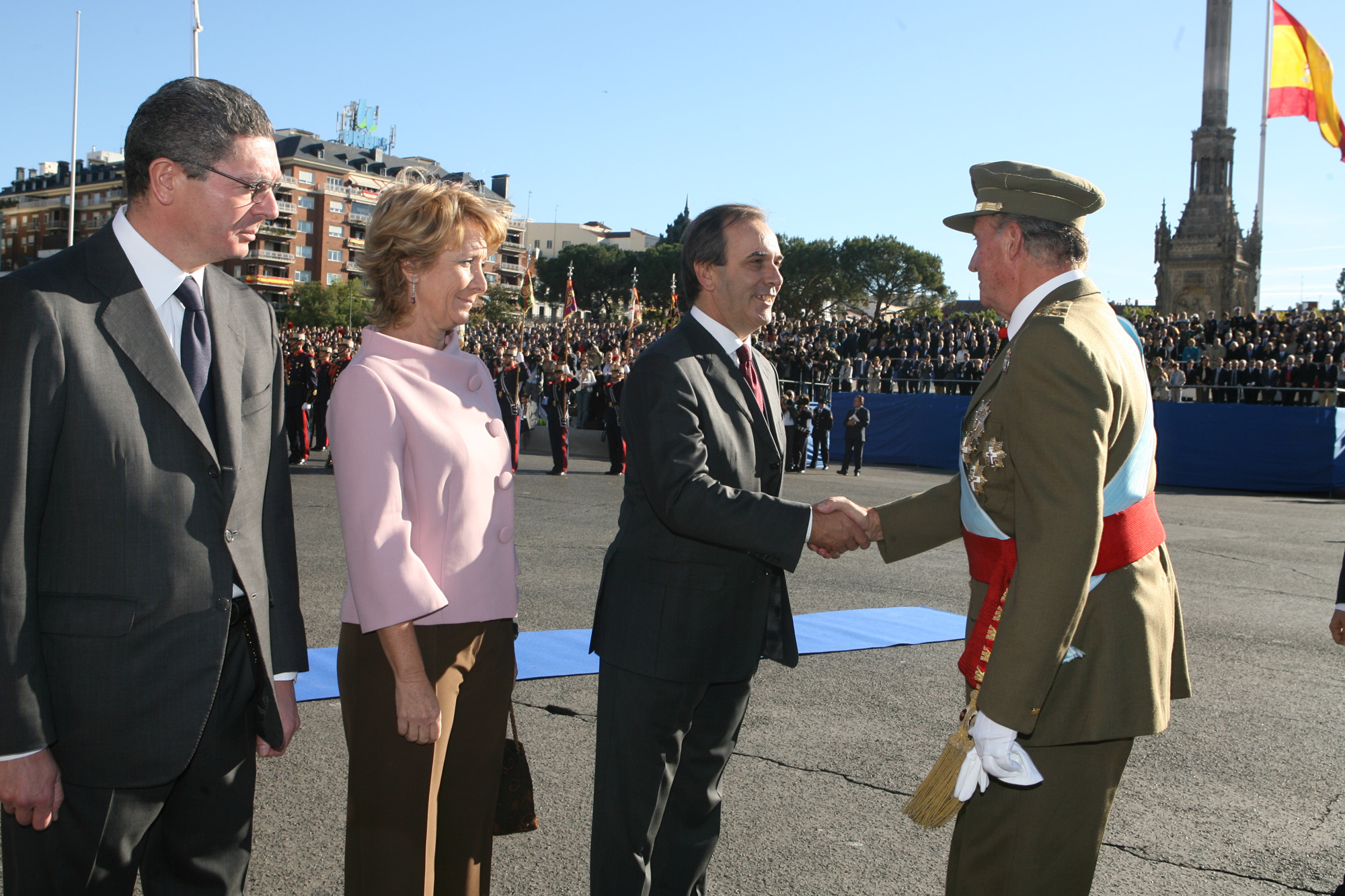 S. M. El rey saluda a José Antonio Alonso, ministrio de Defensa en la plaza de Colón