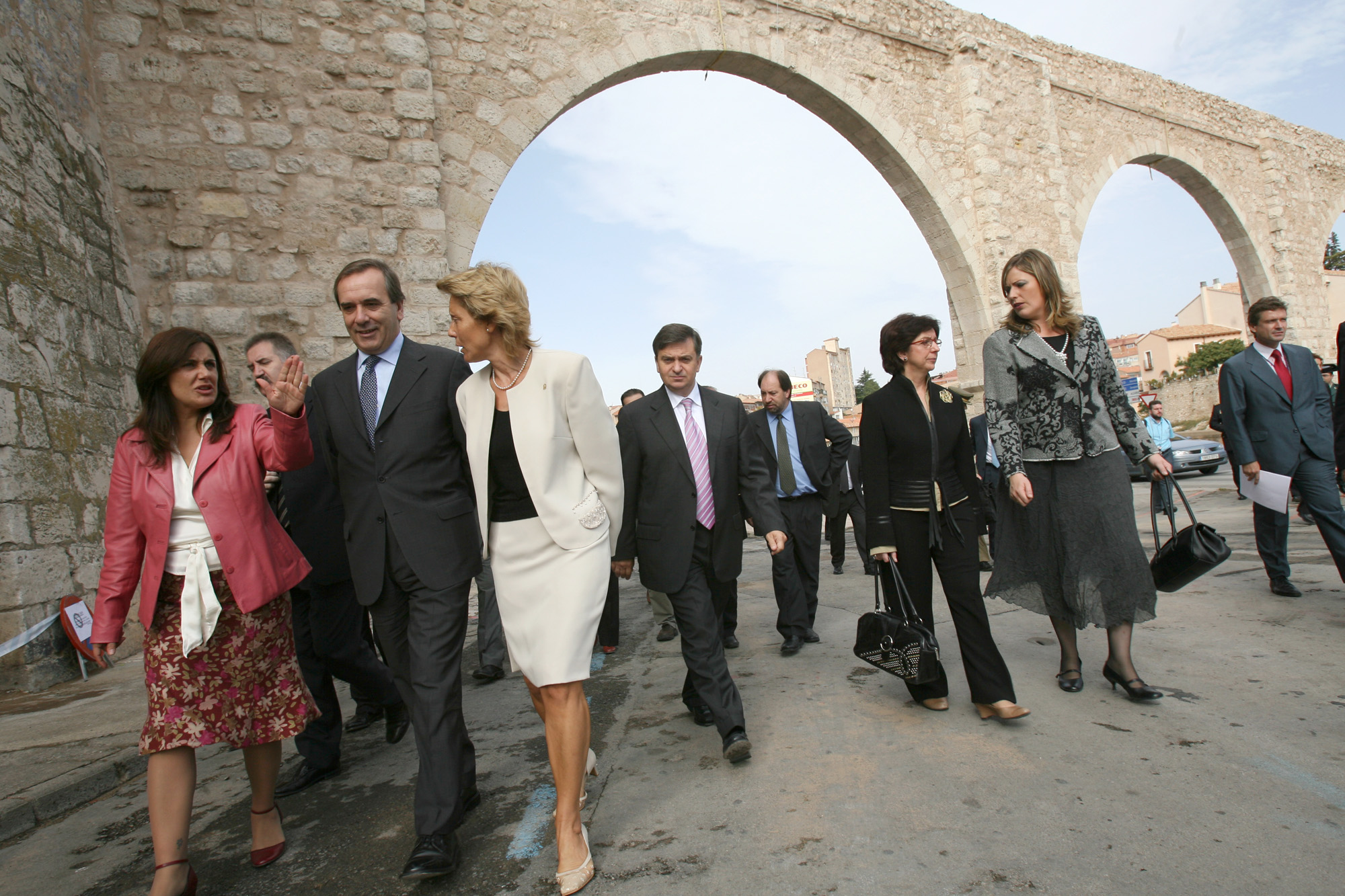 Autoridades de Defensa y del Ayuntamiento de Teruel ante la muralla de la ciudad