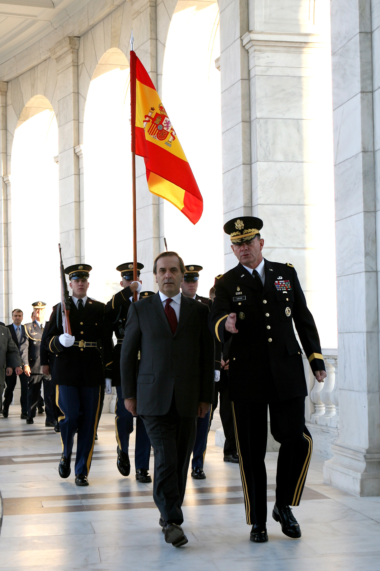 El ministro de Defensa, José Antonio Alonso, y el General Guy C. Swan, jefe del distrito militar de Wasington, en el cementerio se Arlington