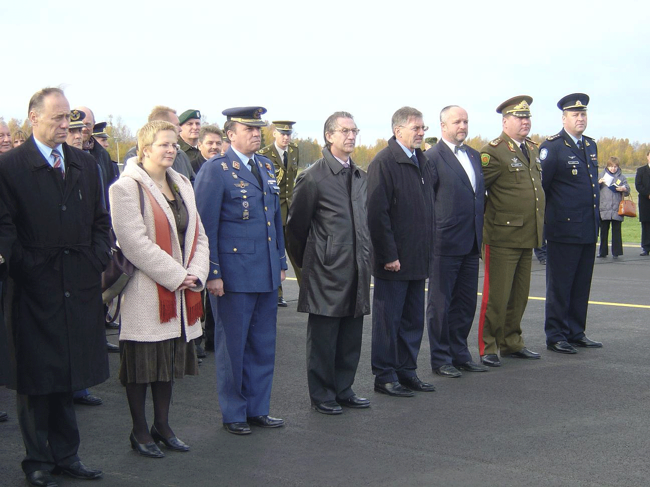 Autoridades asistentes (Centro Izqda-Drcha) el Jefe del Dto. Haris,Tcol Del Cid, el embajador de españa en Lituania, Fidel López; el Primer ministro, Gediminas Kirkilas; el ministro de Defensa, Jouzas Olekas, y otras autoridades del Estado y municipales