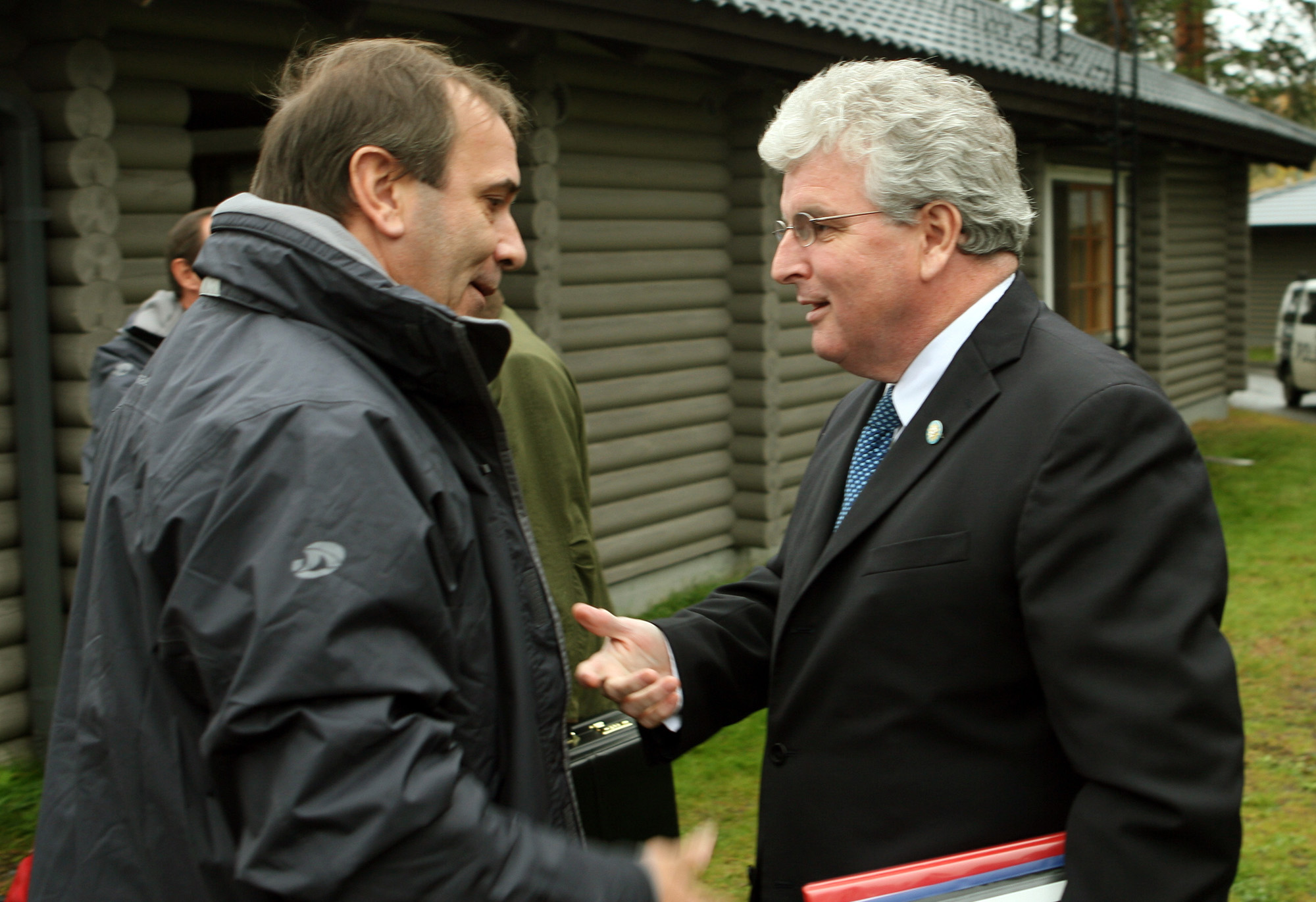Los ministros de Defensa del Reino Unido y de España, Des Browne y José Antonio Alonso, en Kittilä (Finlandia) antes del comienzo de la reunión