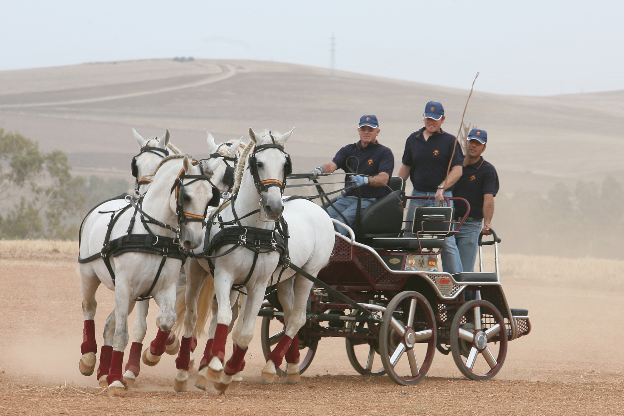 Presentación en las instalaciones de Completo de una tanda de caballos y coches de caballos