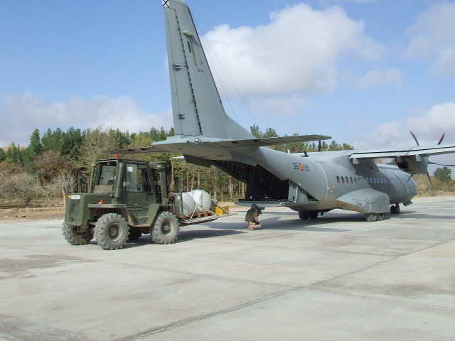 Avión del Ejército español procedente de Herat, durante la descarga del material para la base militar en Qala e Naw
