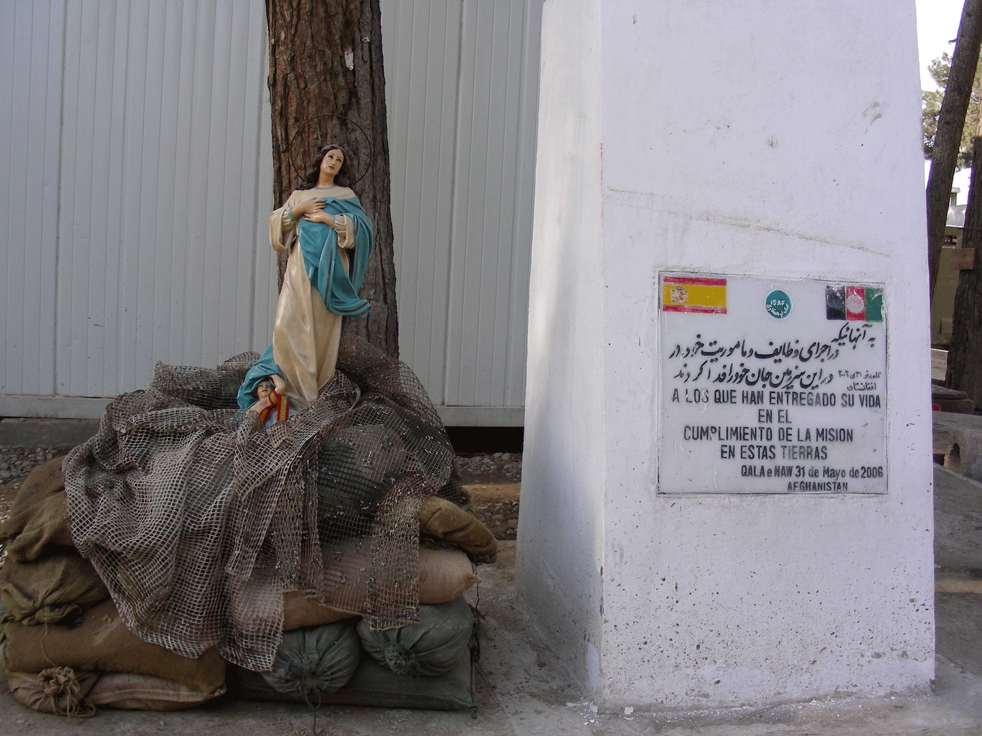 La Inmaculada, patrona de Infantería, junto al monumento por los que dieron su vida en cumplimiento de la misión.